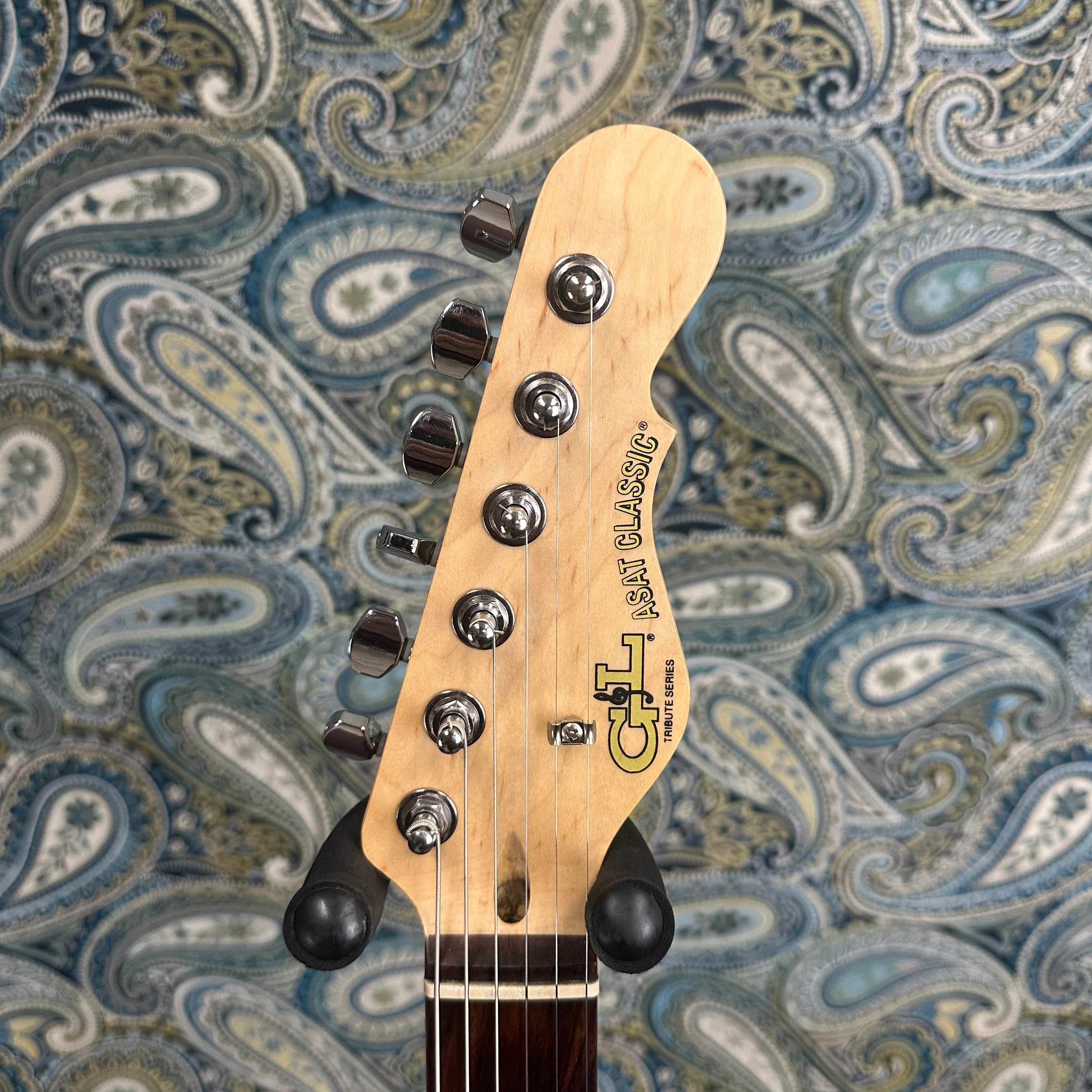 "The G&L Tribute ASAT Classic is Leo's final word on the traditional single-cutaway bolt-on axe. Framed around a classic boxed-steel bridge created by Leo Fender, the basswood body design delivers crisp attack with complex harmonics while individual brass saddles offer modern levels of intonation refinement." -G&L