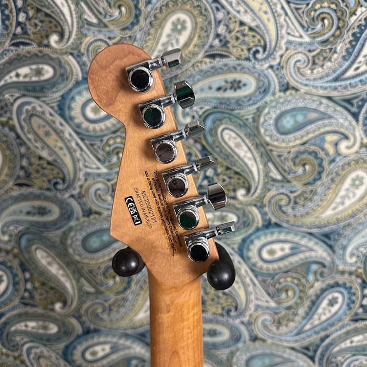 Routed for an SSS pickup configuration, this axe combines a Seymour Duncan® Custom Hot Rails® Strat® SHR-1B humbucking bridge pickup, Seymour Duncan Custom Flat Strat SSL-6 single-coil middle pickup and Seymour Duncan Custom Flat Strat SSL-6 RWRP single-coil neck pickup for plenty of glassy, vintage-style timbre with classic Strat chime.