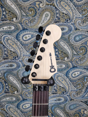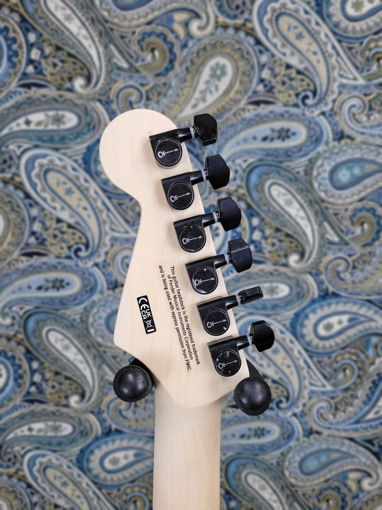 - Charvel®-branded sealed die-cast tuners, Charvel neck plate and standard strap buttons