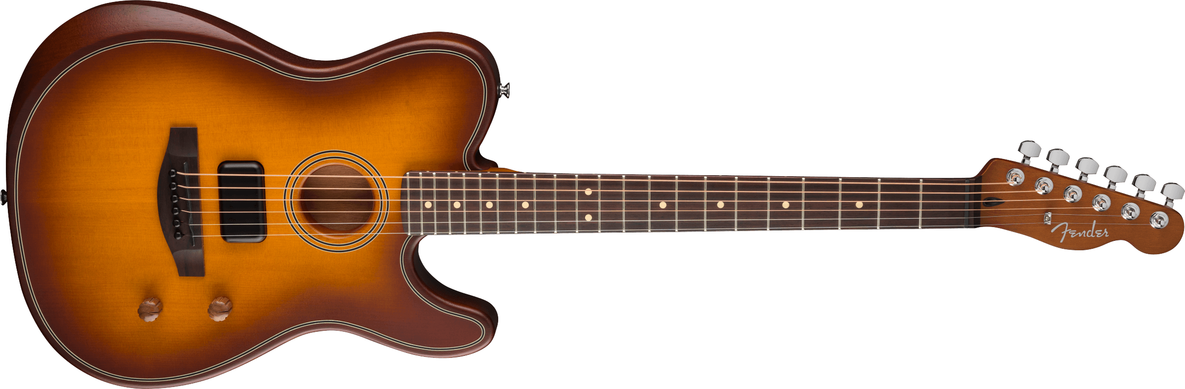 The dual personality of the Acoustasonic Standard Telecaster® equips players with a versatile spectrum of acoustic and electric tones in a single creative tool. With a braced solid Sitka spruce top, fully chambered body, inventive Fender and Fishman®-designed analog electronics with volume and blend control, and the familiar playing feel of a Fender icon, this Tele® truly sets the standard for the Acoustasonic experience.
