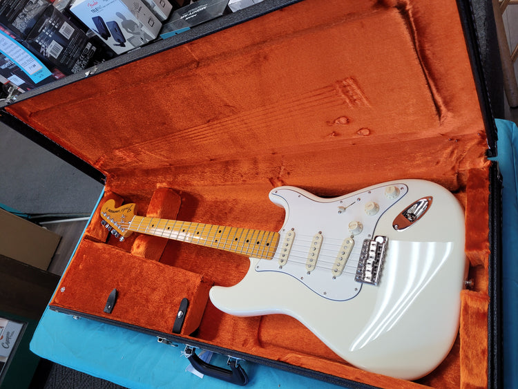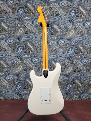 The Fender Limited Edition American Vintage II 1973 Stratocaster in Olympic White is a faithful re-creation of a classic ’70s Strat that captures the bold character, aesthetic, and tone of a pivotal era in Fender history. With its distinctive styling and period-correct specs, this instrument brings vintage authenticity to the hands of modern players. Built with a resonant ash body and finished in a slick gloss polyurethane, this Strat not only looks stunning in its Olympic White finish but also delivers the crisp, articulate tone that ash is known for—bright, clear highs with tight, punchy lows.