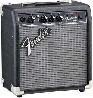 For the beginning electric guitarist or anyone who wants a small, easy-to-use practice amp with quality tone and a great price, the Frontman 10G is at your service. Conveniently compact and built with classic Fender style, it delivers full sound from its 6" speaker, with a gain control and overdrive switch that rock guitar tones from tube-emulated overdrive to full-strength ultra-saturated distortion—perfect for blues, metal and famous Fender clean tone.FEATURES