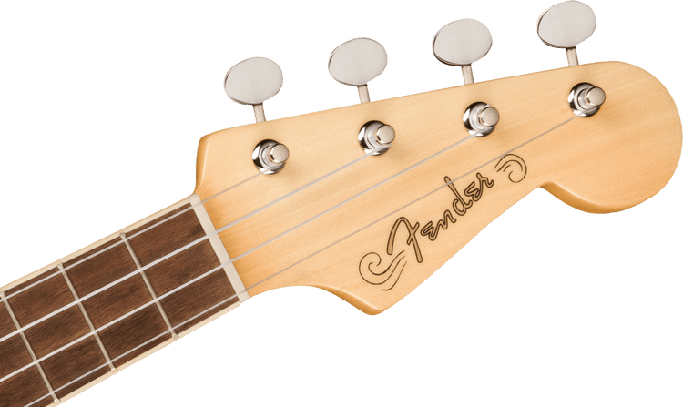 Tipping the hat to Fender’s iconic guitar body shapes, the Fullerton Series ukuleles are nothing short of electric. The Fullerton Stratocaster departs from traditional ukulele construction and aesthetics, while remaining faithful to Fender’s history. The Stratocaster ukulele’s pickguard, signature finish color options, and 4-in-line headstock can only be categorized as quintessentially Fender. The Fullerton Stratocaster is the perfect choice for the ukulele player looking to inject the spirit of rock ’n roll into every performance.