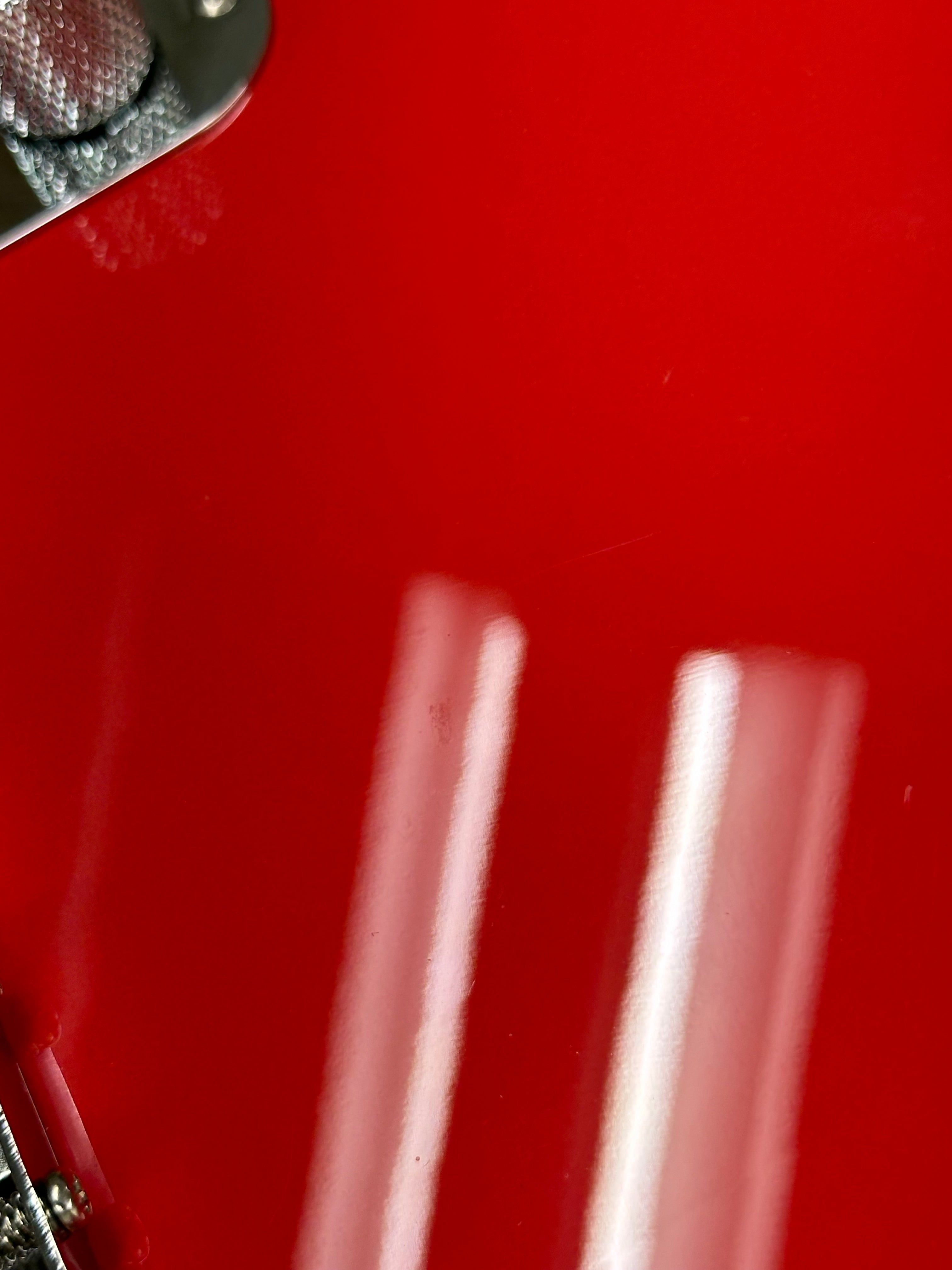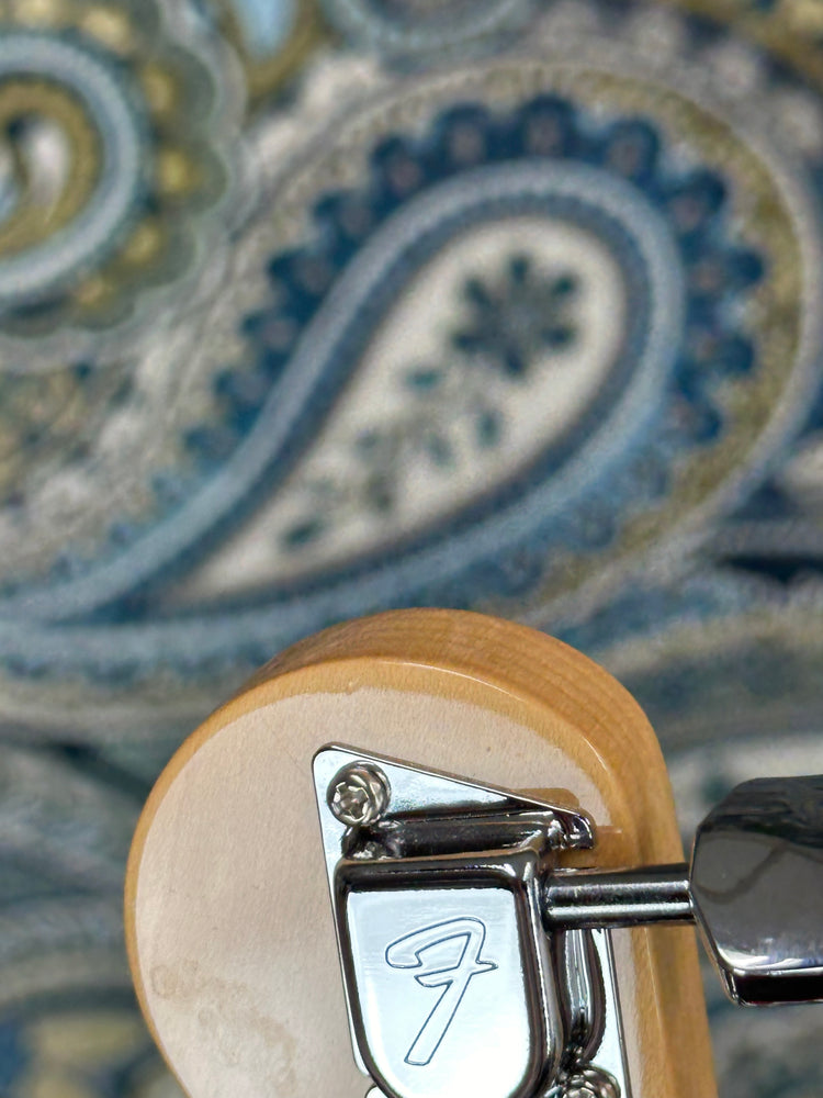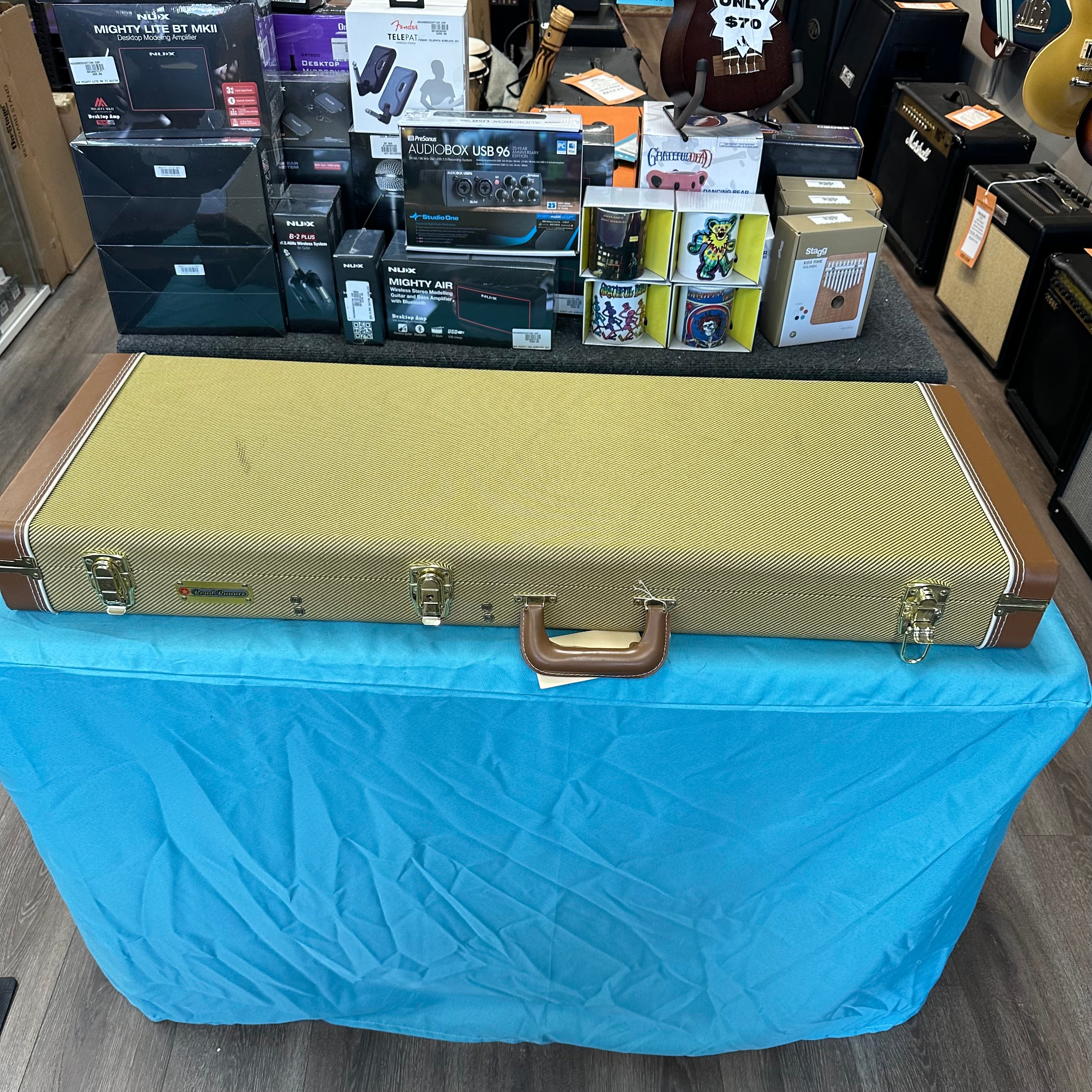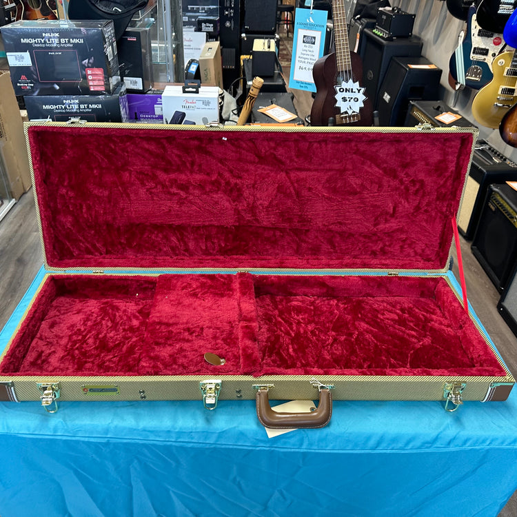 This guitar is in great shape! There are a few minor signs of use throughout. These include small scratches throughout the front and back of the body and a small nick in the finish on the back of the headstock. These have been photographed to our best ability. Only visible under microscopic viewing and hot studio lights. This guitar plays like a dream and the pickups are smooth and musical. MIJ Fender got it right with this one! Staff favorite. Comes with an aftermarket tweed case