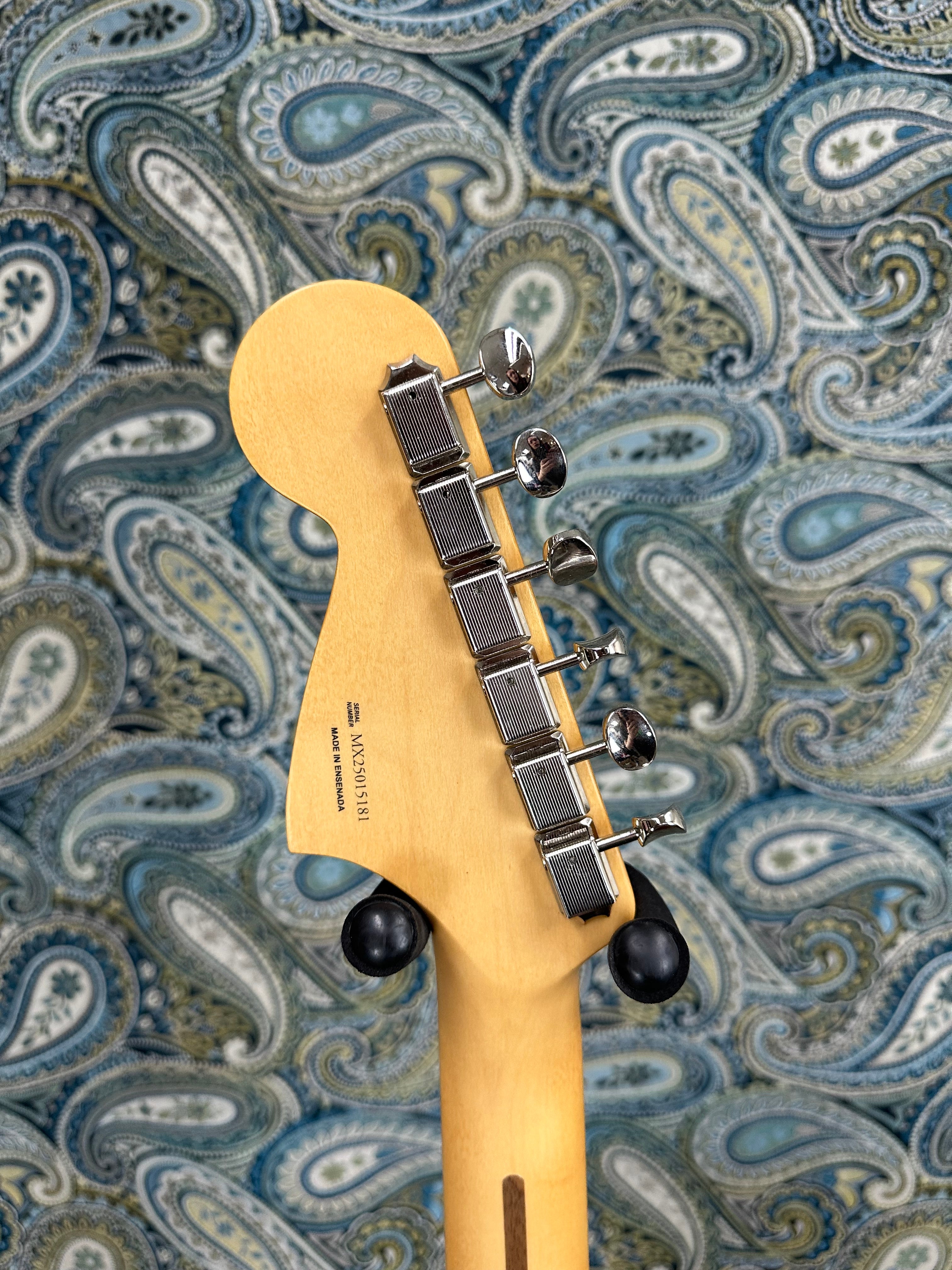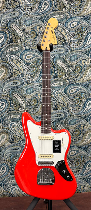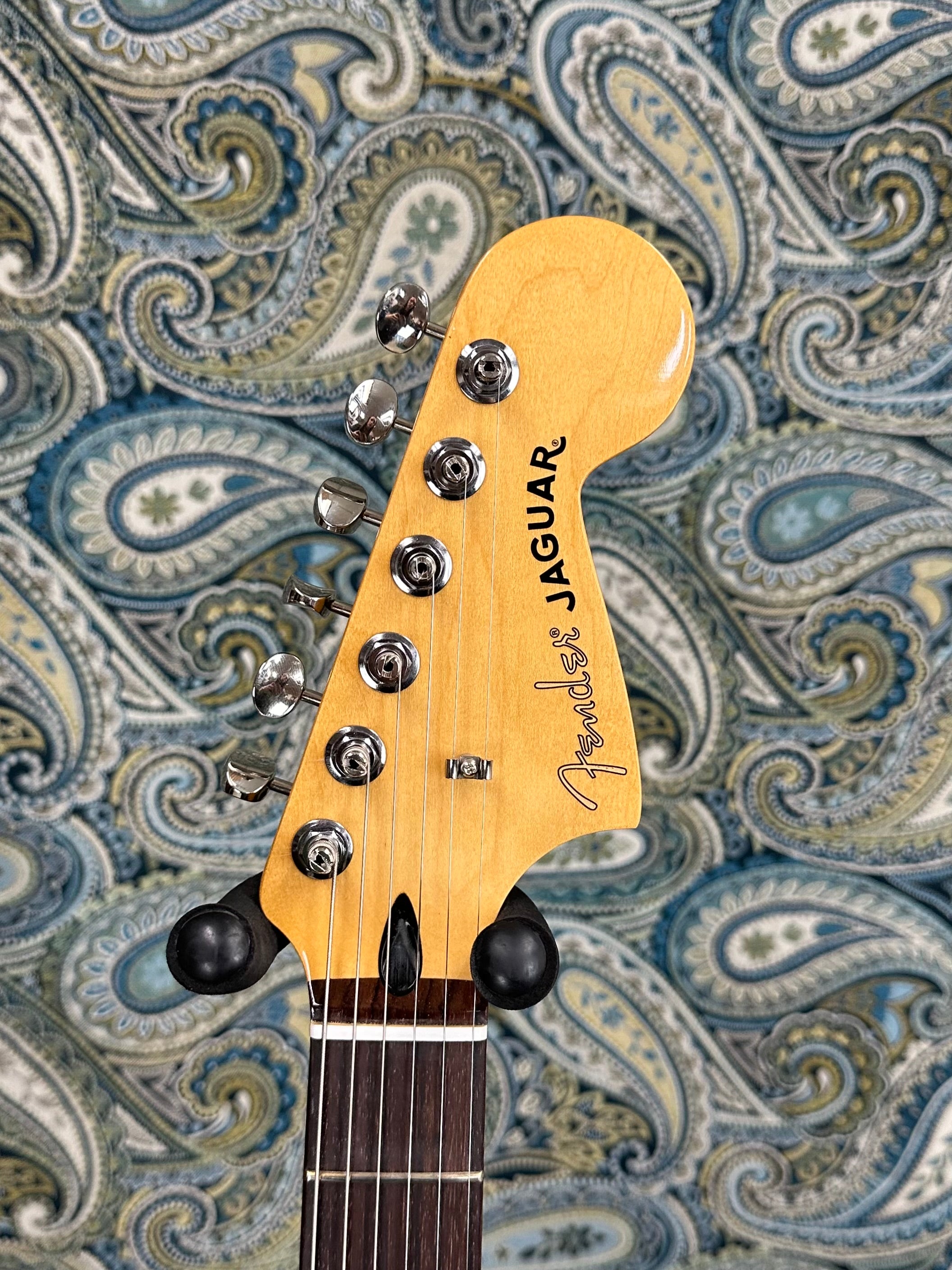 The Player II Jaguar radiates timeless Fender charm, but under the hood, it's primed for today's players. Everything about the neck is designed for fast and fluid playability, from the Modern “C”-profile with silky satin urethane finish on the back to the comfy 9.5”-radius slab rosewood with smooth rolled edges and 22 medium jumbo frets. A classic alder body is available in both timeless Fender finishes and never-before-seen colors unearthed from the archives. Player Series Alnico V (Bridge) and Alnico II (Neck) Single-Coil Jaguar pickups offer crystalline highs, musical mids and tight lows that elevate any genre. The 3-way blade switch lets you easily dial in everything from glassy neck pickup chime to cutting bridge pickup bite and all points in between, while a 6-saddle Jaguar bridge with Floating Tremolo, upgraded Mustang® saddles and ClassicGear™ tuners ensure precise tuning stability for the flexibility to explore endless sonic possibilities.