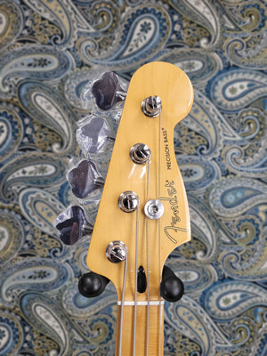 The Player II Precision Bass radiates timeless Fender charm, but under the hood, it's primed for today's players. Everything about the neck is designed for fast and fluid playability, from the Modern “C”-profile with silky satin urethane finish on the back to the comfy 9.5”-radius slab rosewood or maple fingerboard with smooth rolled edges and 20 medium jumbo frets. A classic alder body is available in both timeless Fender finishes and never-before-seen colors unearthed from the archives. Player Series Alnico V Split-Coil P bass® pickups offer sweet highs, musical mids and seismic lows that elevate any genre. An adjustable 4-saddle bridge, single-groove steel saddles and open-gear tuners ensure precise tuning stability for the flexibility to explore endless sonic possibilities.