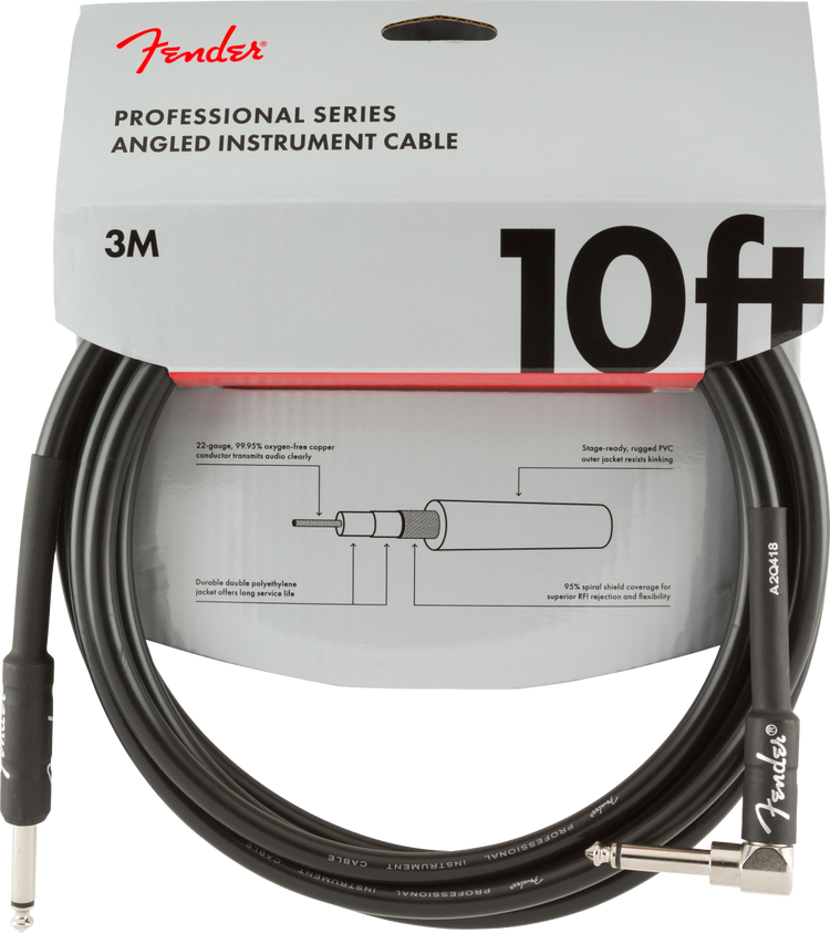 Fender Professional Series Straight to Right Angle Instrument Cable 10'