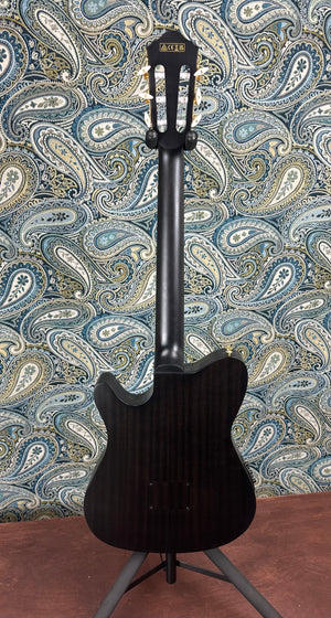 Bridging two musical worlds, the Ibanez FRH20 combines nylon-string richness with the sleek playability of a solidbody electric, giving you expressive depth without sacrificing speed and comfort. The eye-catching solid flame maple top is supported with classical-style fan bracing, enabling this acoustic-electric guitar to vibrate freely for a resonant, well-balanced sound with plenty of sustain. The nyatoh neck sports a comfortable C shape, and you get easy access to the rosewood fingerboard, thanks to the cutaways that embellish both sides of the FRH20. Moreover, Ibanez electronics and an under-saddle pickup equip this attention-grabbing instrument with stellar plugged-in tone. From intimate fingerstyle passages to fiery flamenco runs, this hybrid guitar will empower your creativity across genres, making every performance a bold statement. Whether you're a classical player seeking modern flair or an electric guitarist craving a comfortable nylon-string instrument, the FRH20 will inspire you to explore exciting new sonic frontiers.