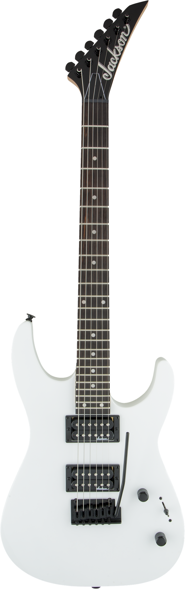 A pair of Jackson high-output humbucking pickups with ceramic magnets cranks out clear tone with plenty of girth, and can be shaped with a three-way toggle switch and single volume and tone controls.