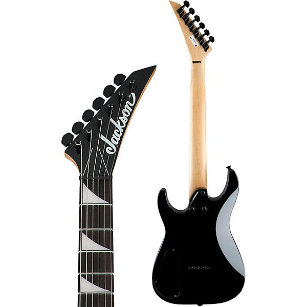 Other features include a rear-angled headstock for evenly distributed tension (reducing playing fatigue), sculpted heel for easy upper register playing, dual Jackson high-output humbucking pickups with three-way blade switching, a string-through-body hardtail bridge and black hardware.