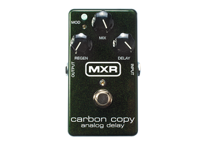 Go from crisp "bathroom" slap echoes to epic, Gilmouresque delays with the MXR Carbon Copy Analog Delay. Featuring 600ms of delay time with optional modulation, and a three-knob layout that controls Delay, Mix, and Regen. In addition, there are two internal trim pots that offer user-adjustable width and rate control of the modulation for even more tonal options. All done by a completely analog audio path for authentic rich, warm analog delay—made possible only by old-school analog bucket brigade technology. True bypass.