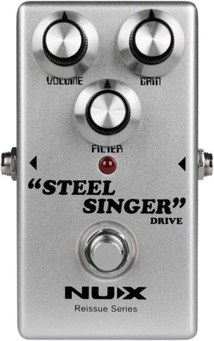 The NUX Steel Singer Drive is an overdrive pedal that's inspired by the Dumble "Steel String Singer" guitar amplifier. It has a smooth high end and sweet mid-range. You can use it as a main overdrive or with a guitar amp.