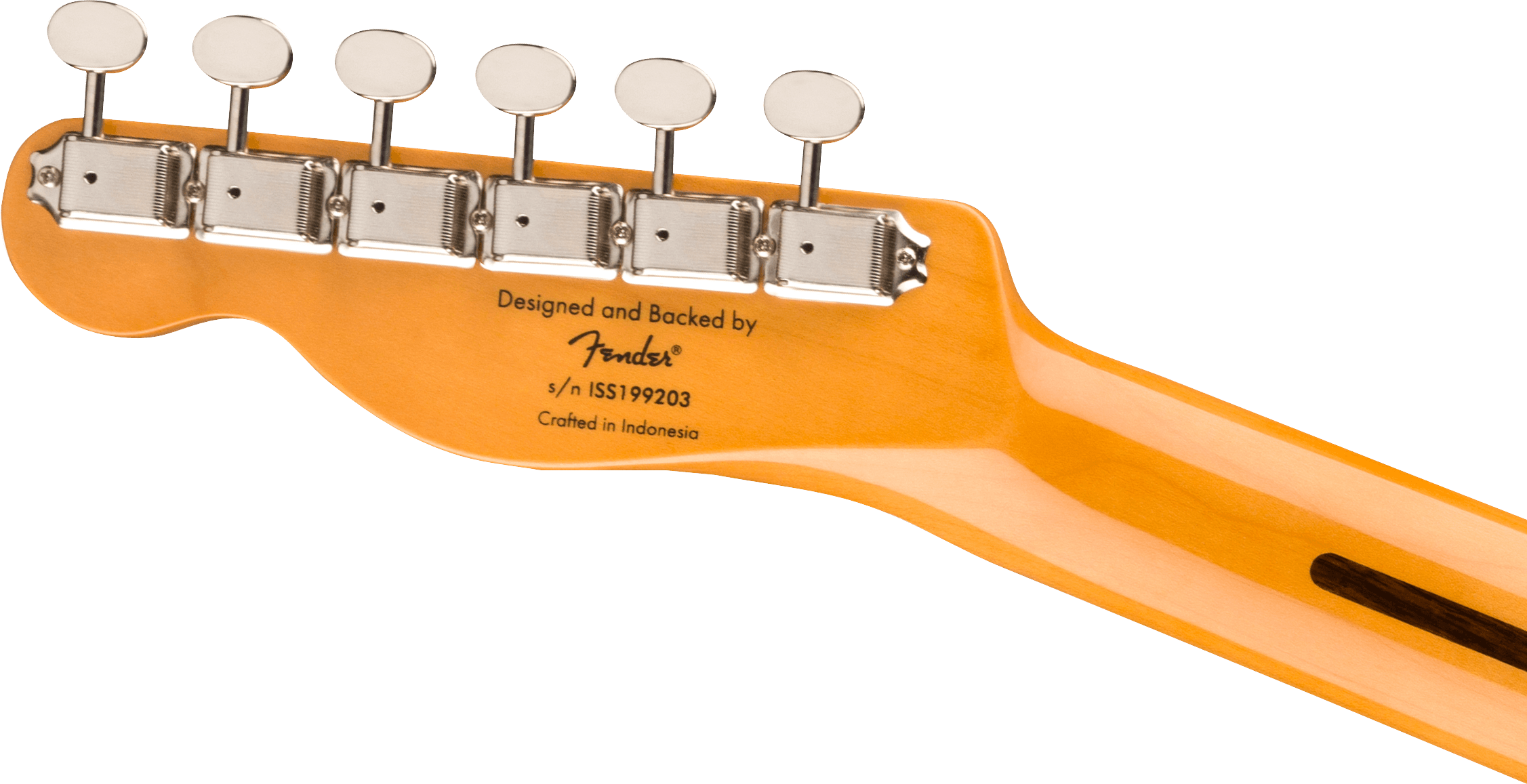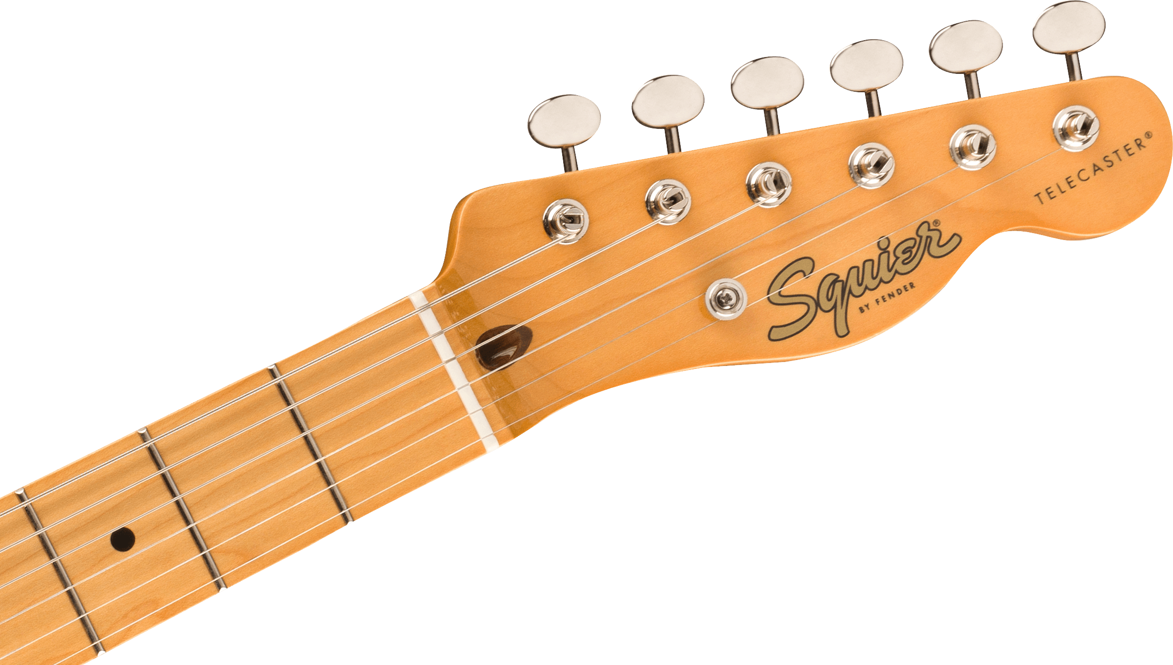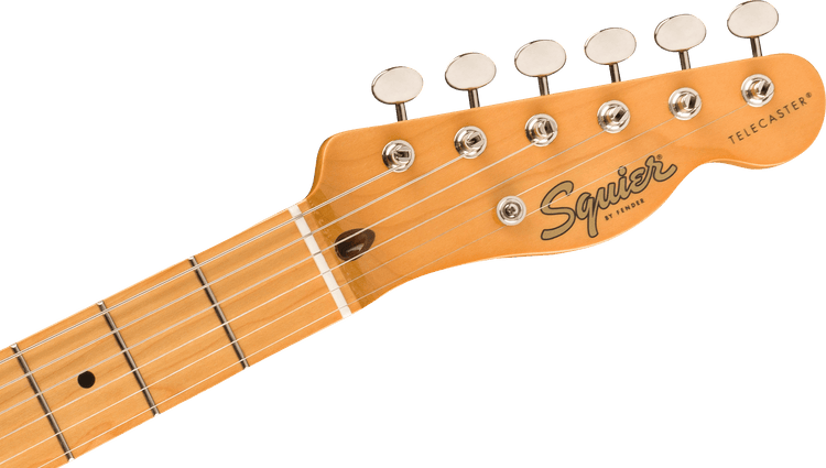 A celebration of the birth of the Tele® in the early 1950s, the Classic Vibe '50s Telecaster creates incredible tone courtesy of the Fender-Designed alnico single-coil pickups. Player-friendly features include a slim, comfortable "C"-shaped neck profile with an easy-playing 9.5"-radius fingerboard and narrow-tall frets, as well as a vintage-style Telecaster bridge with barrel saddles and string-through-body design. This throwback Squier model also features 1950s-inspired headstock markings, rich-looking nickel-plated hardware and a slick vintage-tint gloss neck finish for an old-school vibe.
