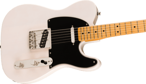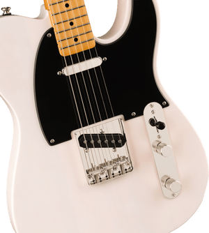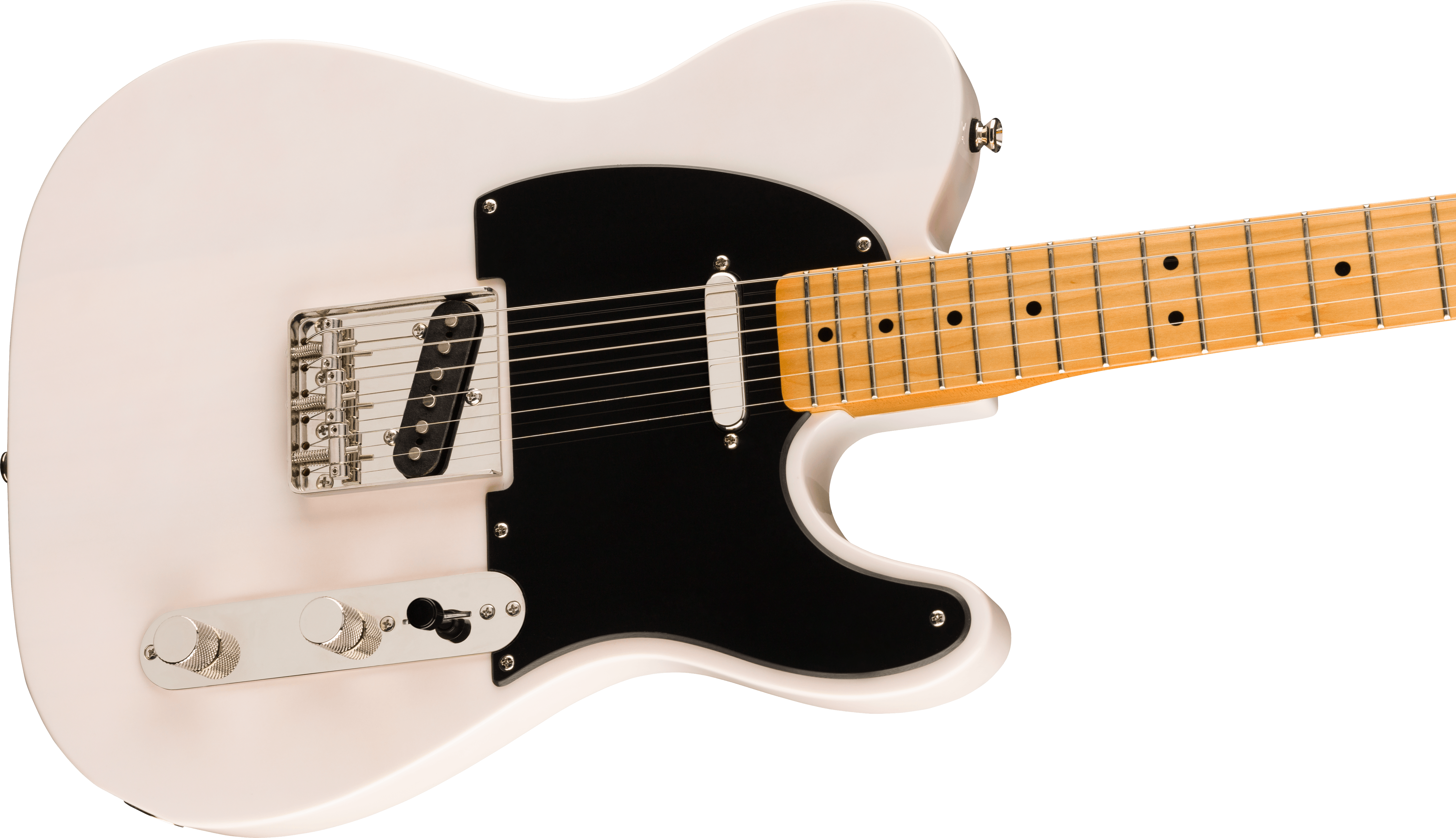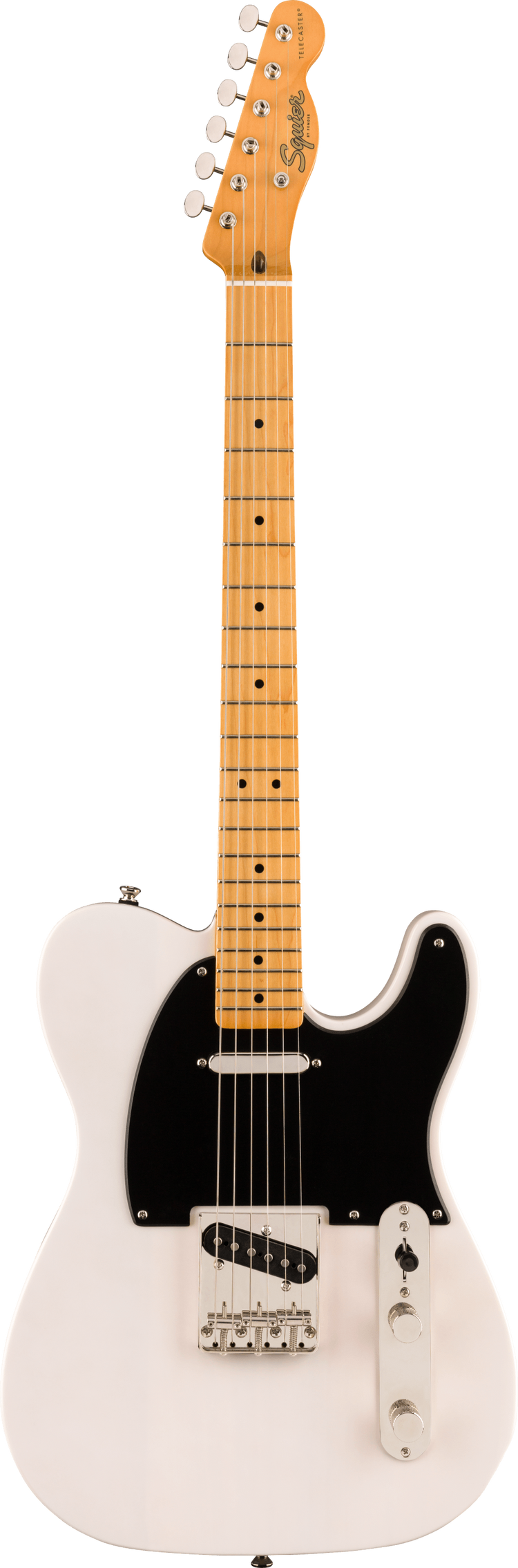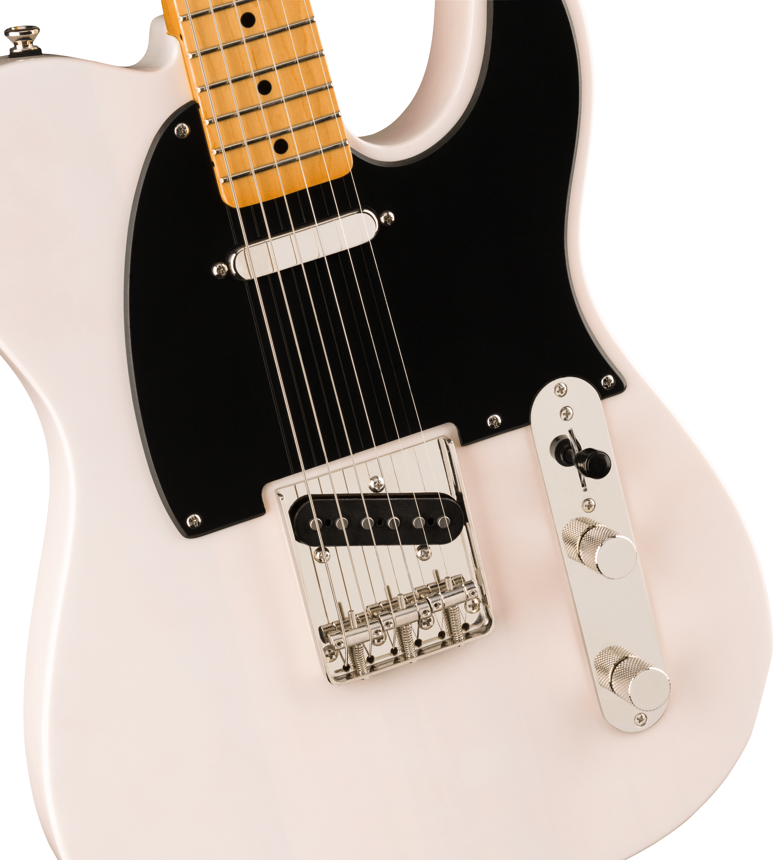 A celebration of the birth of the Tele® in the early 1950s, the Classic Vibe '50s Telecaster creates incredible tone courtesy of the Fender-Designed alnico single-coil pickups. Player-friendly features include a slim, comfortable "C"-shaped neck profile with an easy-playing 9.5"-radius fingerboard and narrow-tall frets, as well as a vintage-style Telecaster bridge with barrel saddles and string-through-body design. This throwback Squier model also features 1950s-inspired headstock markings, rich-looking nickel-plated hardware and a slick vintage-tint gloss neck finish for an old-school vibe.