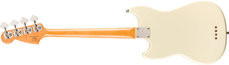 While small in stature, the Classic Vibe '60s Mustang® Bass packs a punch of incredible tone courtesy of the Fender-Designed alnico split-coil pickup. Small hands will appreciate the short 30" scale length and slim, comfortable "C"-shaped neck profile with an easy-playing 9.5"-radius fingerboard and narrow-tall frets. This throwback Squier model also features 1960s-inspired headstock markings, rich-looking nickel-plated hardware and a slick vintage-tint gloss neck finish for an old-school vibe.