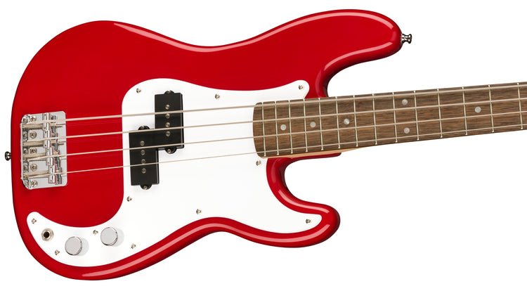 The Squier Mini Precision Bass® is the perfect companion for players seeking a reduced-size instrument with classic styling and familiar Fender® tone. Highlights include a thin and lightweight body, a short-scale neck with an easy-to-play “C”-shaped profile, a Squier split single-coil pickup with volume and tone controls for sonic variety, and a hardtail bridge for solid tuning stability.