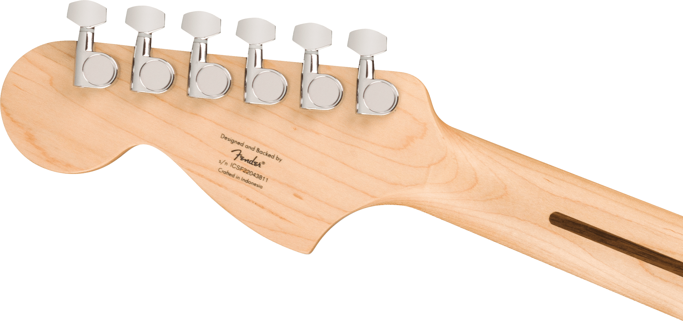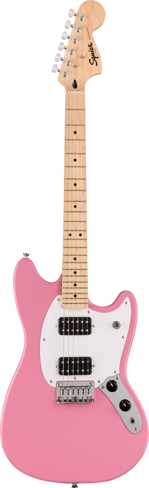 The Squier Sonic™ Mustang® HH is ready to launch any musical adventure into warp speed, offering iconic Fender® style and inspiring tone for players at any stage. This Mustang sports a slim and inviting “C”-shaped neck profile and a thin, lightweight body for optimal playing comfort while a pair of Squier® humbucking pickups (HH) serve up substantial, high-output tone. Further details of this model include a short 24" scale length, 6-saddle hardtail bridge for reliable intonation, sealed-gear tuning machines for smooth, accurate tuning and durable chrome-plated hardware that is sure to catch the spotlight.