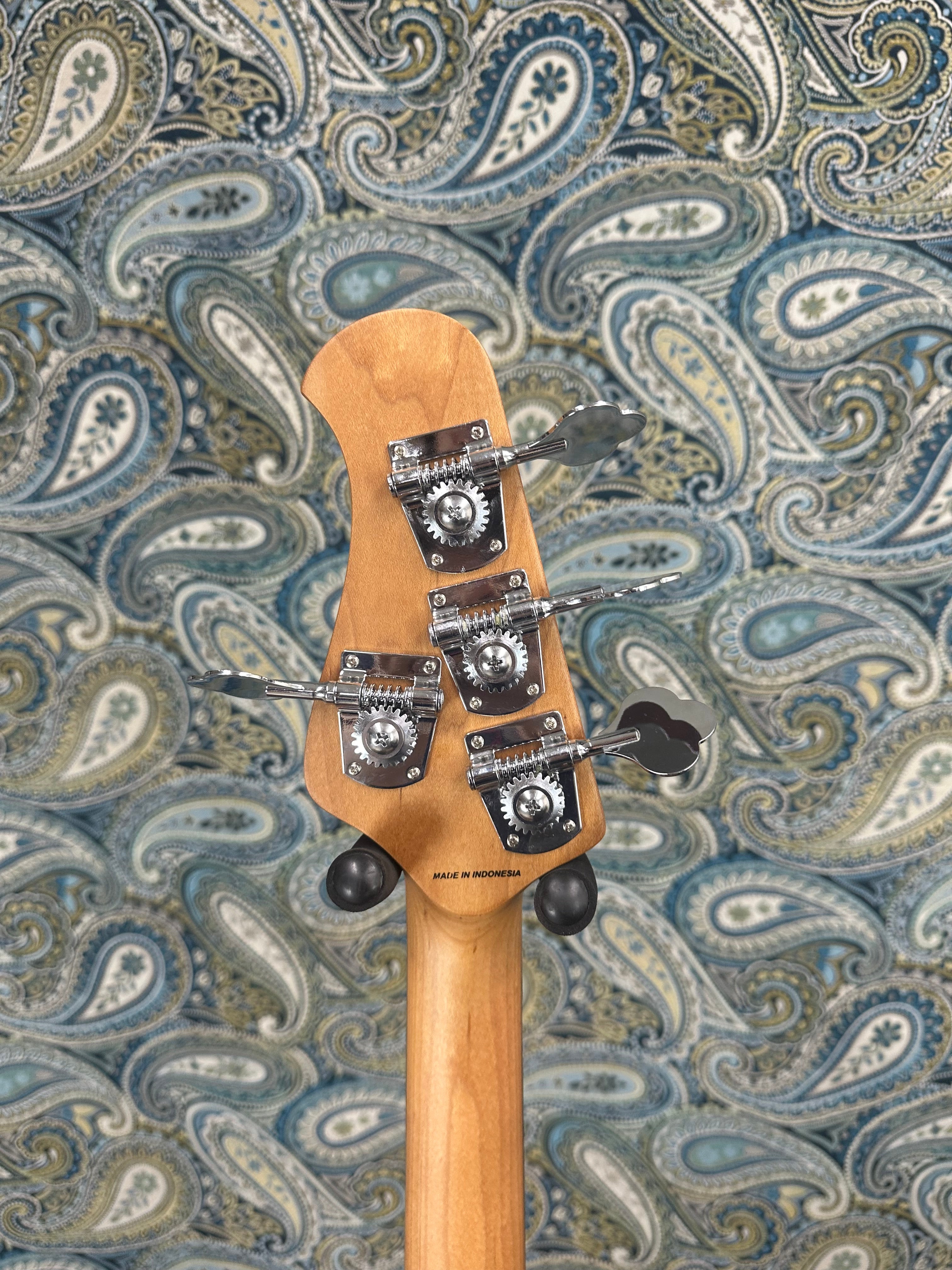 The dual humbucker StingRay RAY34 bass features two Sterling by Music Man designed pickups, a roasted maple neck, and a 3-band active preamp — delivering the signature big and bold StingRay sound with added tonal versatility.