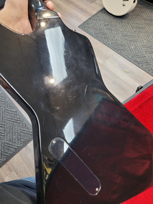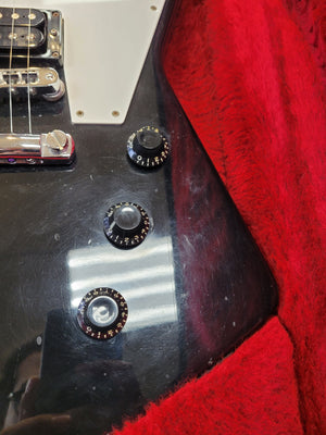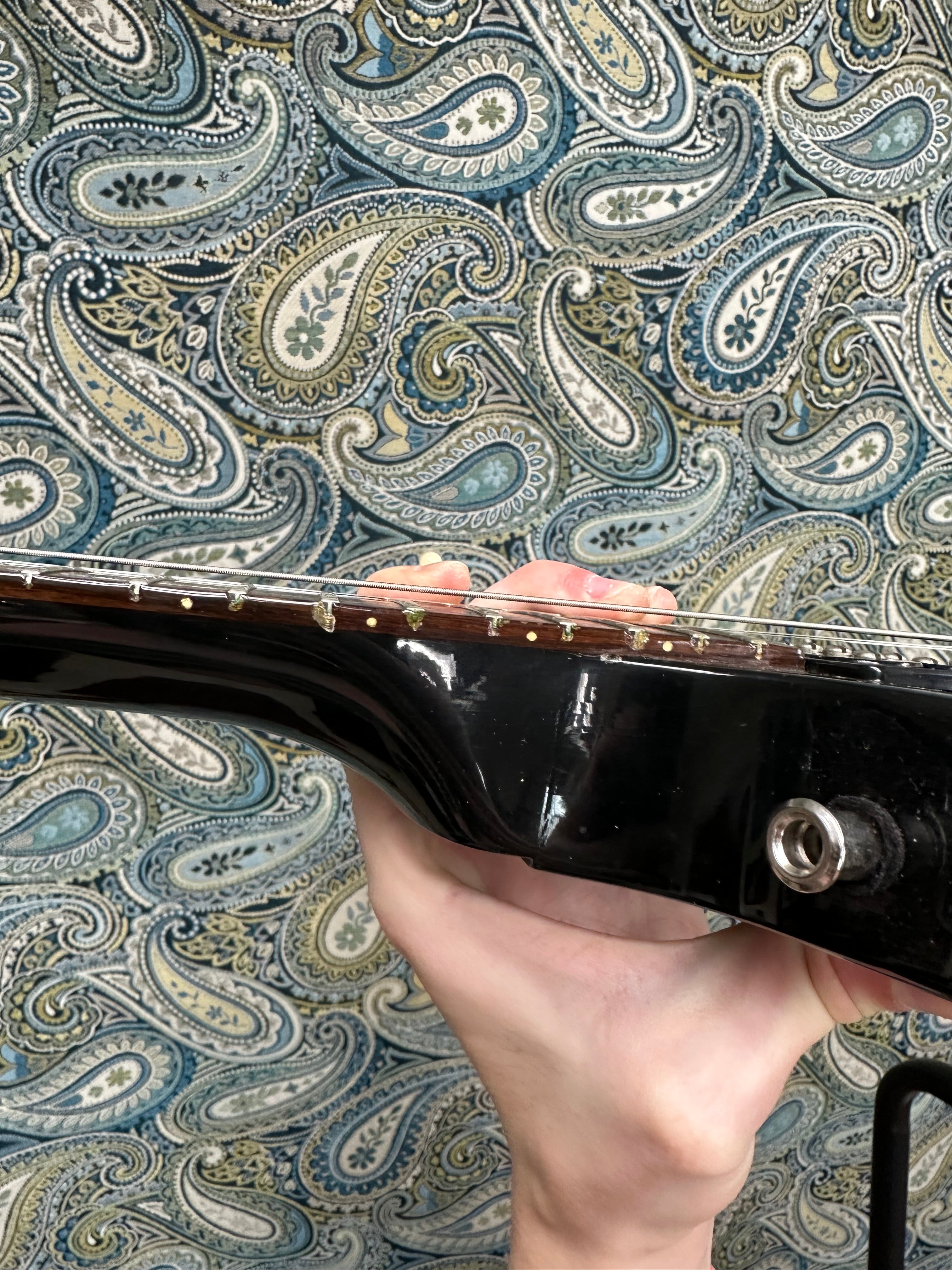 The guitar plays very well with it's original frets. They are in good shape with minor signs of play wear. It plays as a Norlin-era Explorer should. It's silky smooth with low action throughout and no buzzing frets.