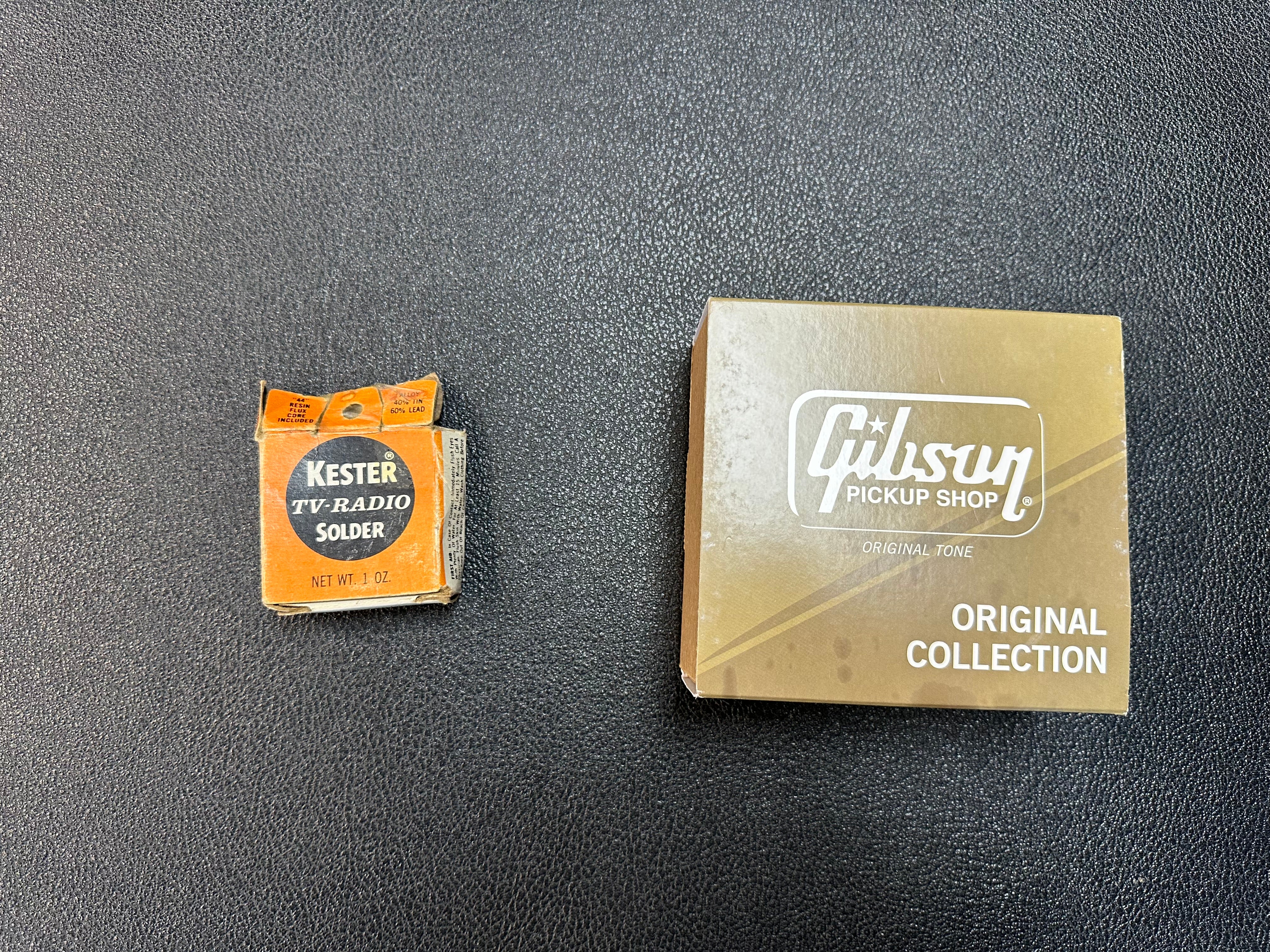 The original bridge pickup has been replaced with a Gibson Pickup Shop 70's Tribute T. The original pickup is included with the guitar, the previous owner says it "needs to be rewound". There is electrical tape around the windings. There is some cosmetic difference between the new pickup and the original, namely the pole pieces. It even comes with the solder from the Kalamazoo factory!