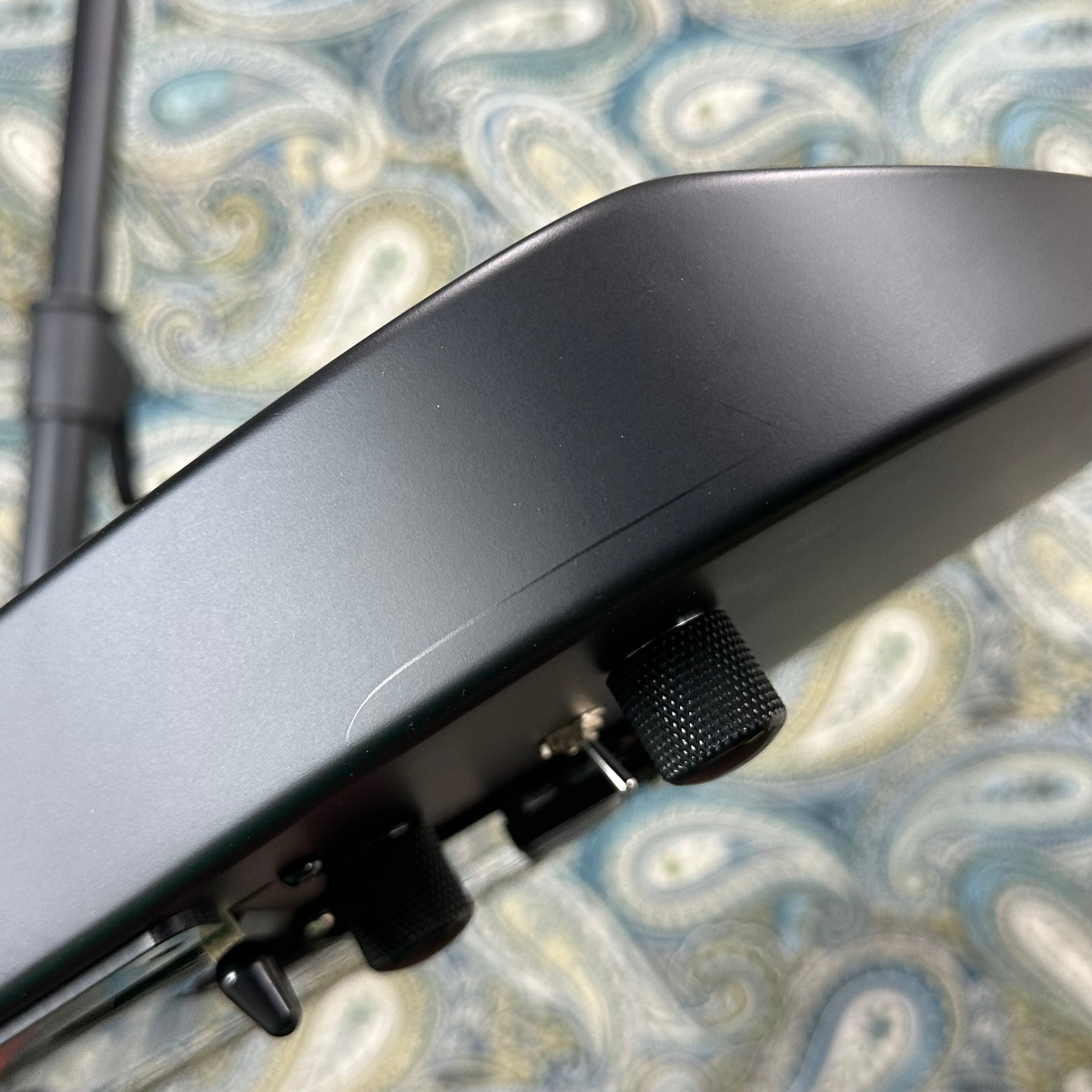 This guitar is in great shape with the exception of some light scratching and signs of wear throughout. There are some light scratches in the matte finish by the bass side of the bridge pickup/bridge plate, a small ding by the battery cover, and a scratch on the side by the tone knob. Less wear than you typically see on a matte black finish instrument! The roasted maple neck feels very comfortable and the frets are in great shape.