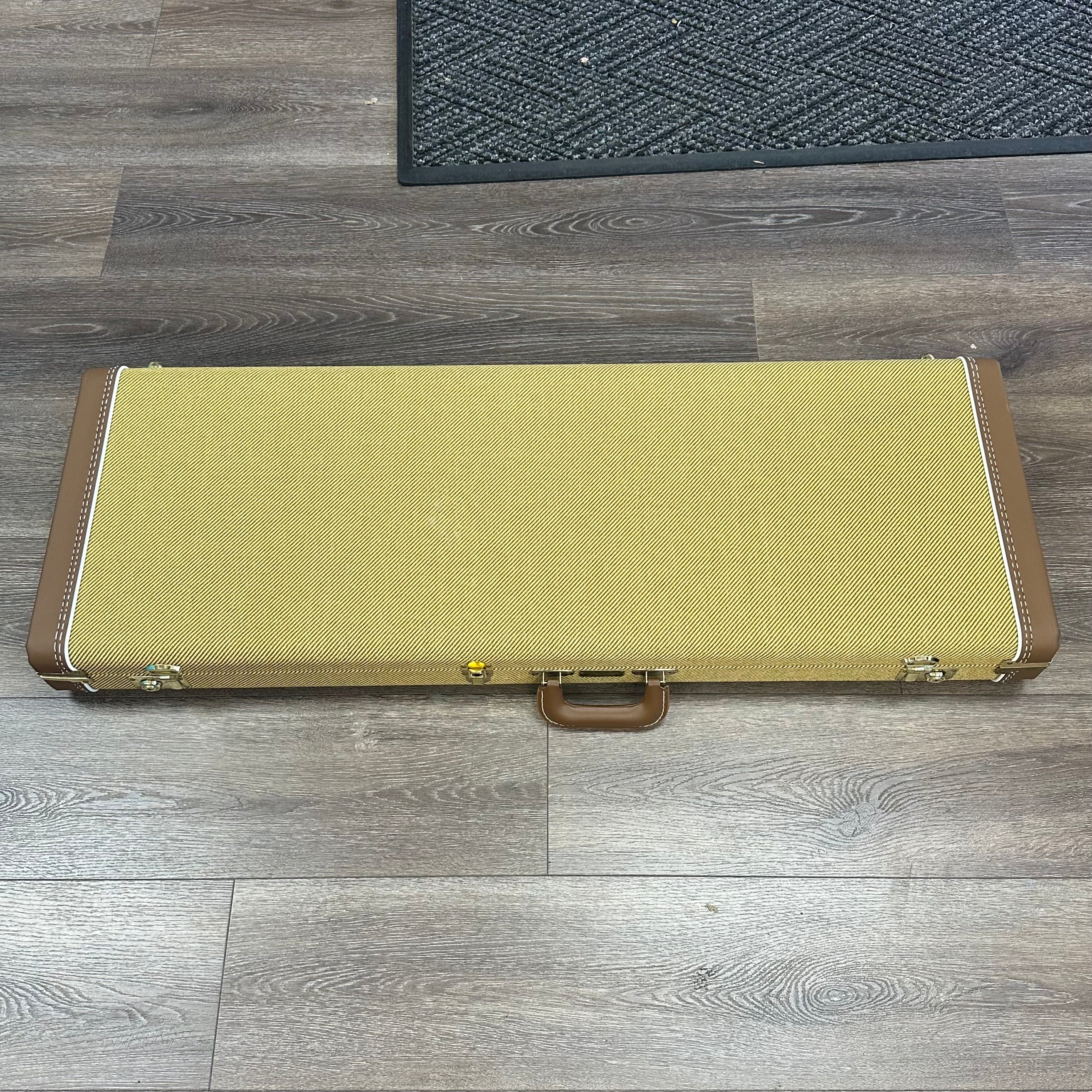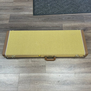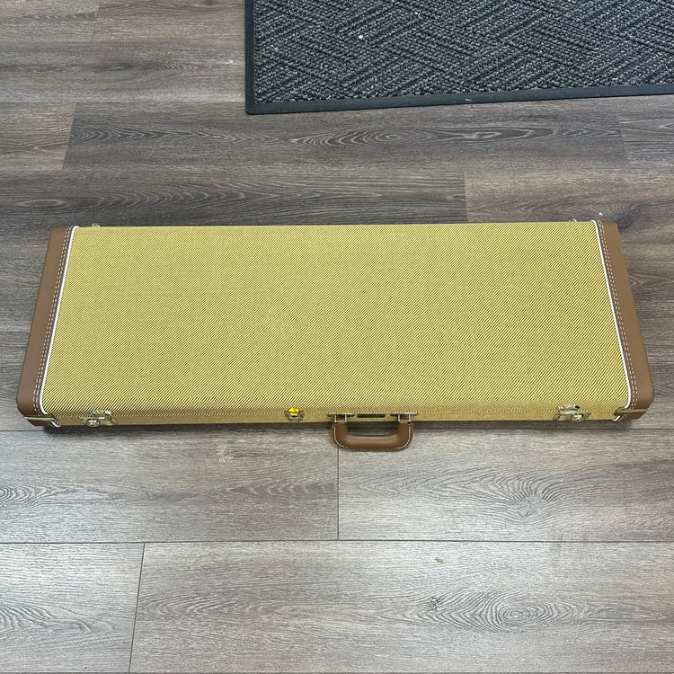 This one is a showstopper! Need a strat that blends 50's class with modern flexibility? Look no further than this American Original '50s. This guitar is full of awesome specs. Nitrocellulose lacquer finish, soft V neck shape, custom shop pickups, bone nut, the list goes on. At the same time, the 5-way switching and chambered body add a modern flare to this swag machine. Cosmetically, this instrument is in great shape. There are little to no signs of play wear throuhgout, apart from two things. A minor finish scratch on the top of the headstock and a small crack in the back-guard from an overtightened screw at some point. These are not visible to the untrained eye. Comes with a nice tweed hard case.