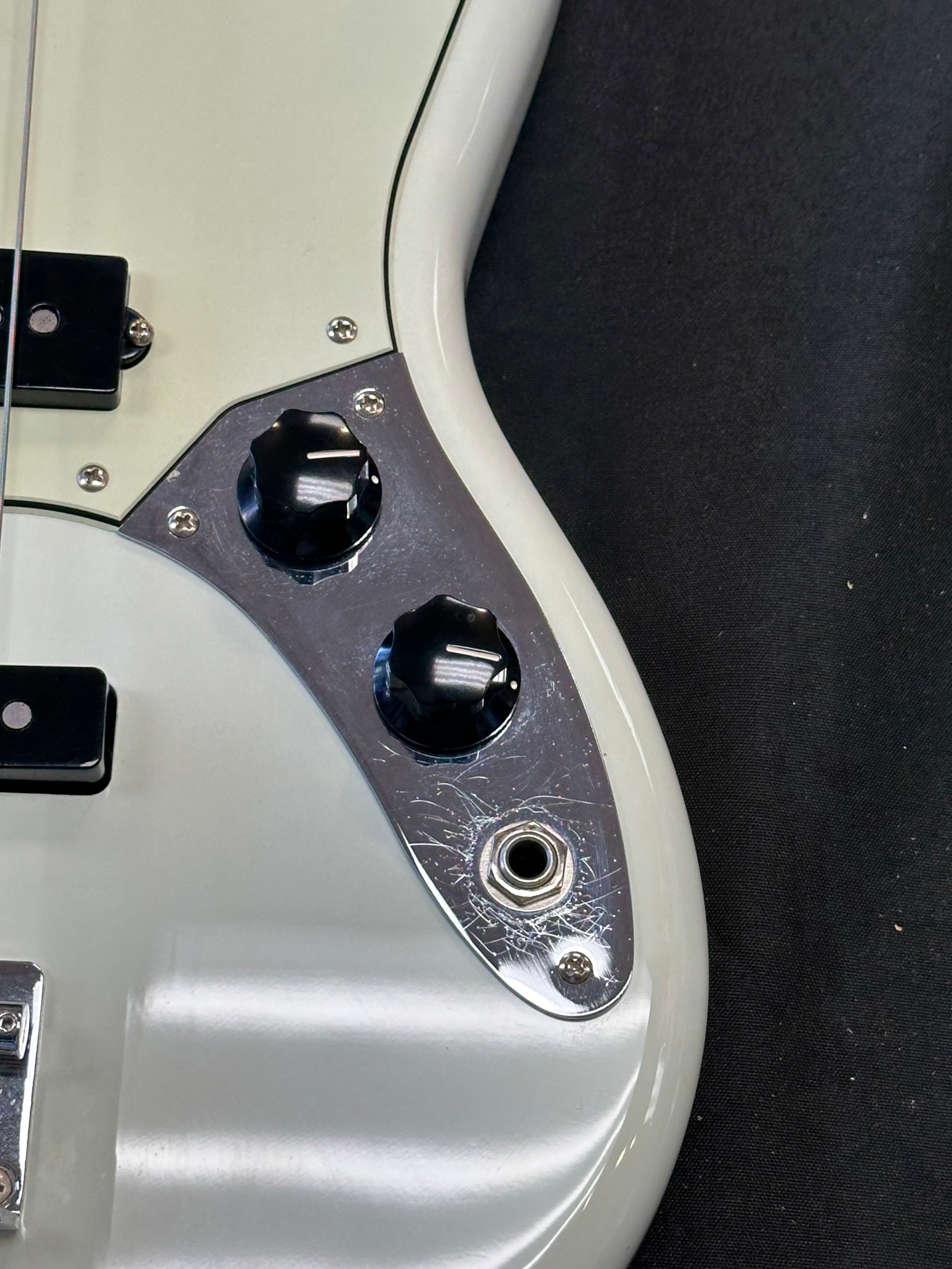 This bass absolutely ROCKS! Get a mexican made ripper for a reasonable price. This axe has a fair amount of wear. There are various nicks and dings throughout the body as pictured. The frets are in good shape. There is some wear around the jack on the control plate. Point being- this thing has been loved, but it kicks. If you can get over a few nicks here and there, you can grab yourself a LIFETIME instrument.