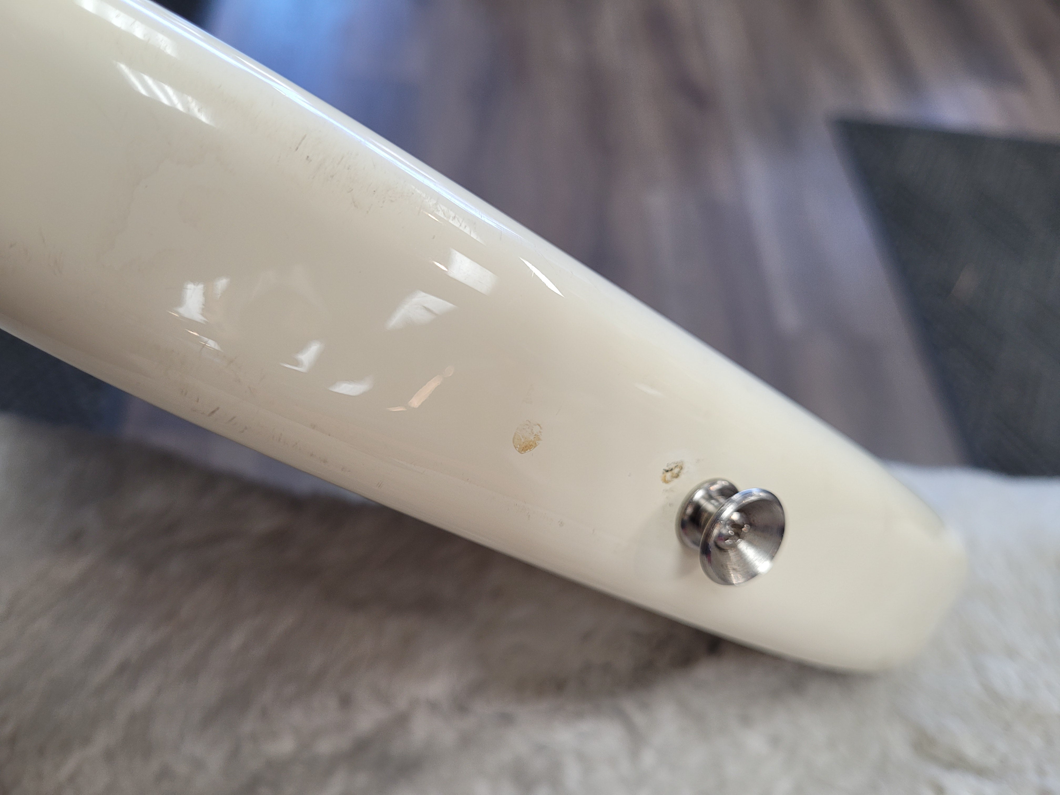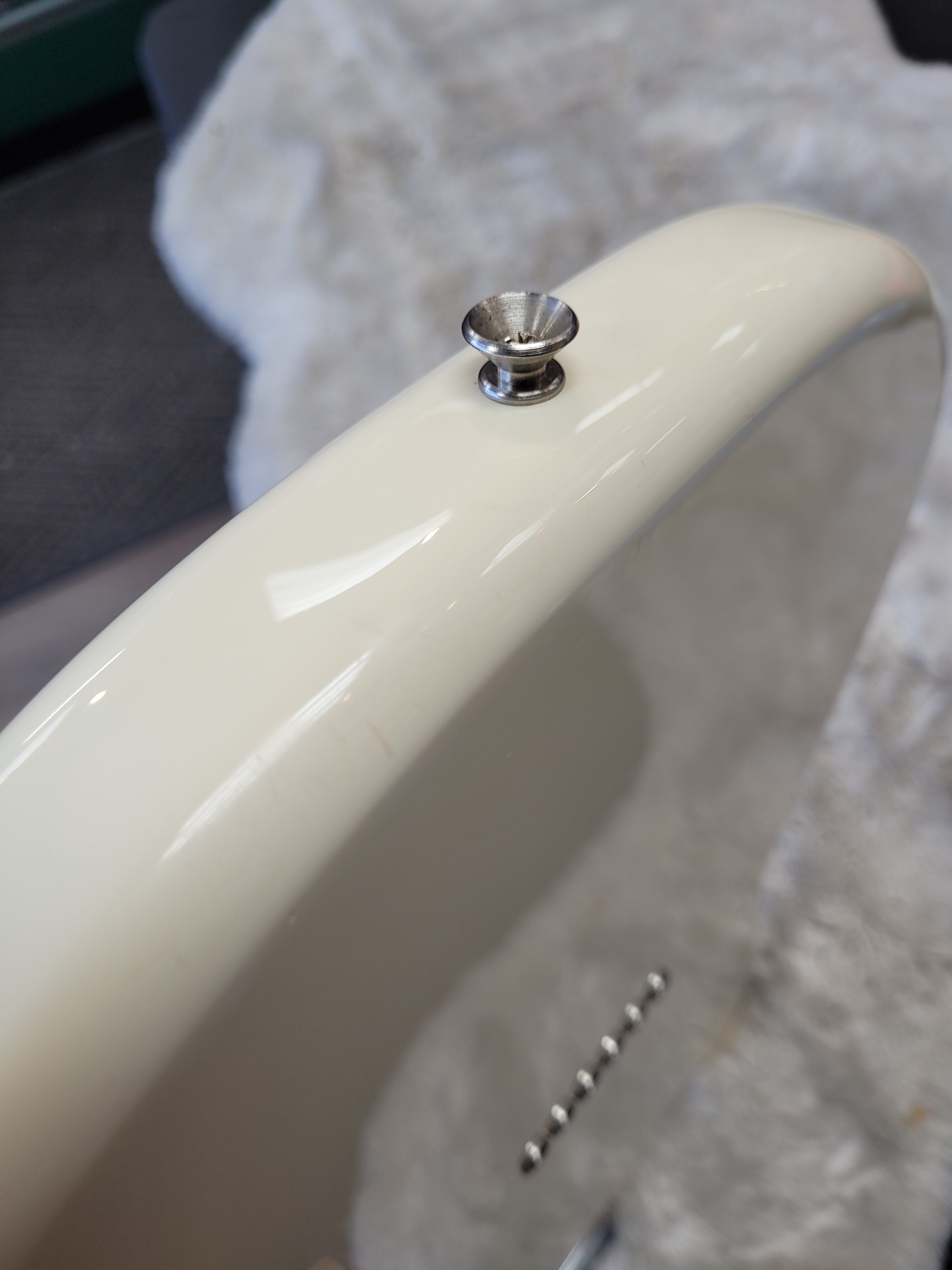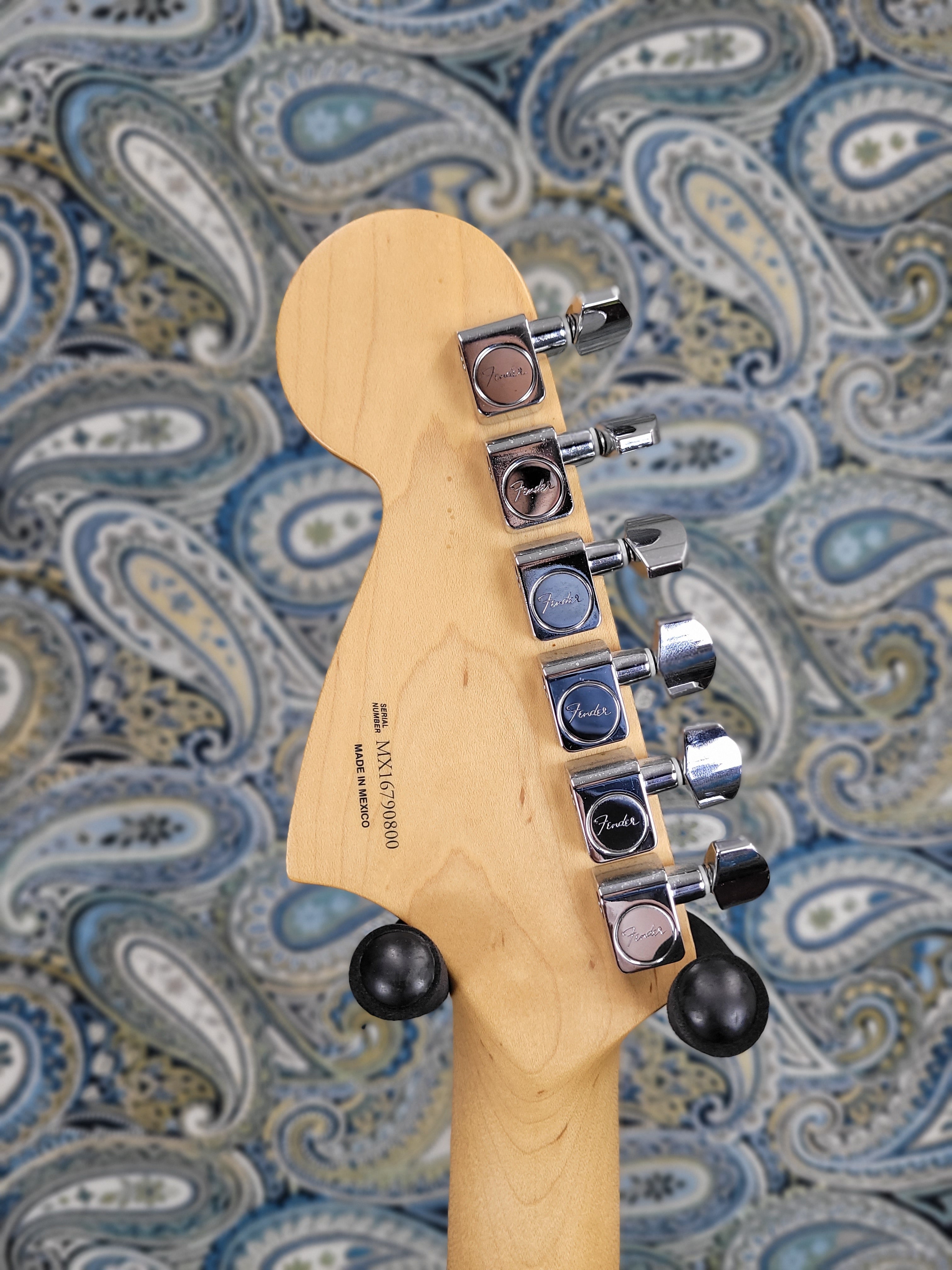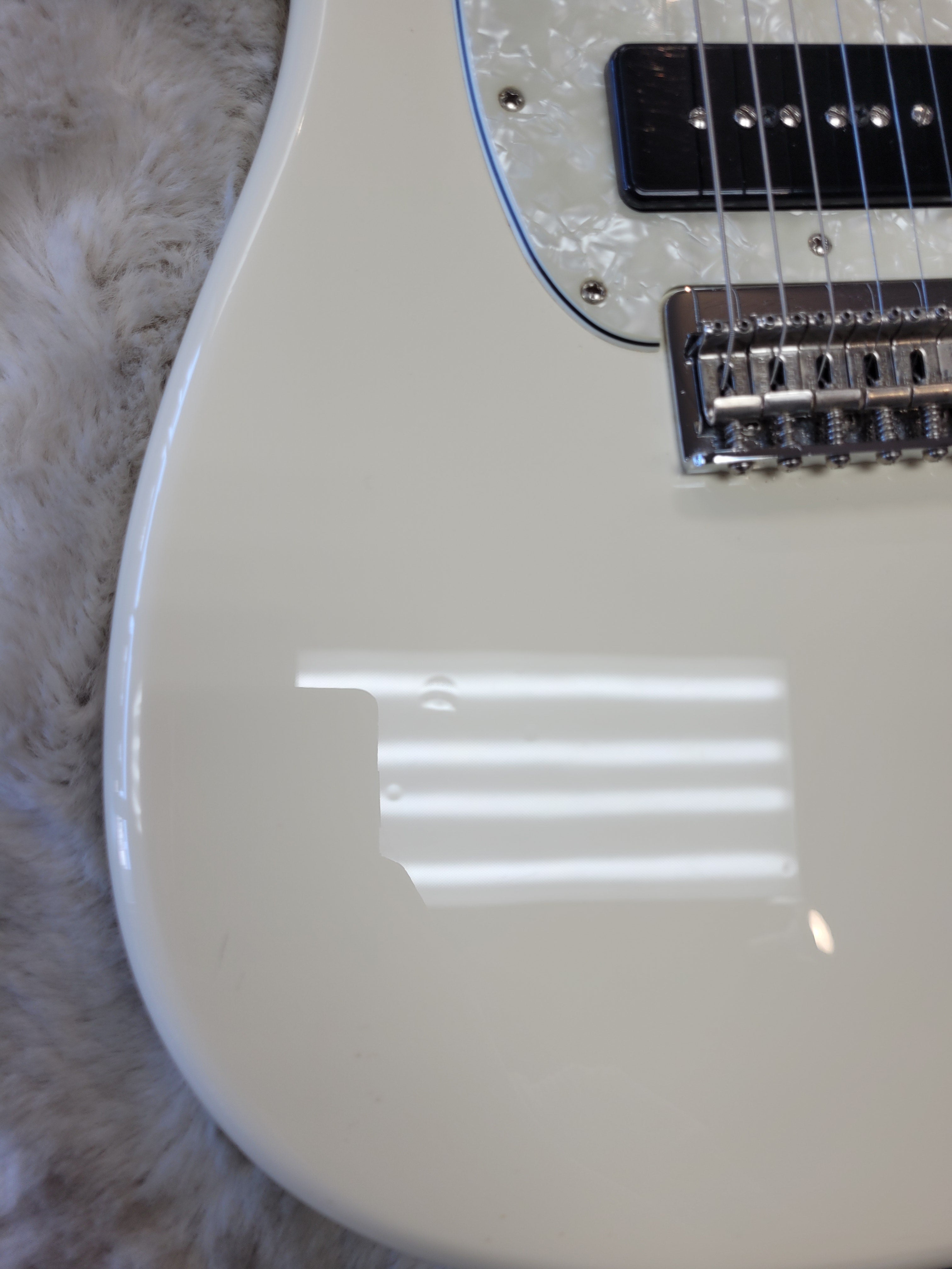 This guitar has a lot of the wear you would expect on a white guitar that's a decade old. There are numerous small scratches, scuffs, and dings that we tried to photograph to the best of our ability. After it's first year of production (2016), the fretboard changed from rosewood to pau ferro. Since this is a 2016, you don't have to worry about that! If you're looking for an all-out, no frills, Rock 'n' Roll machine that's seen some battle scars, this is the axe for you!