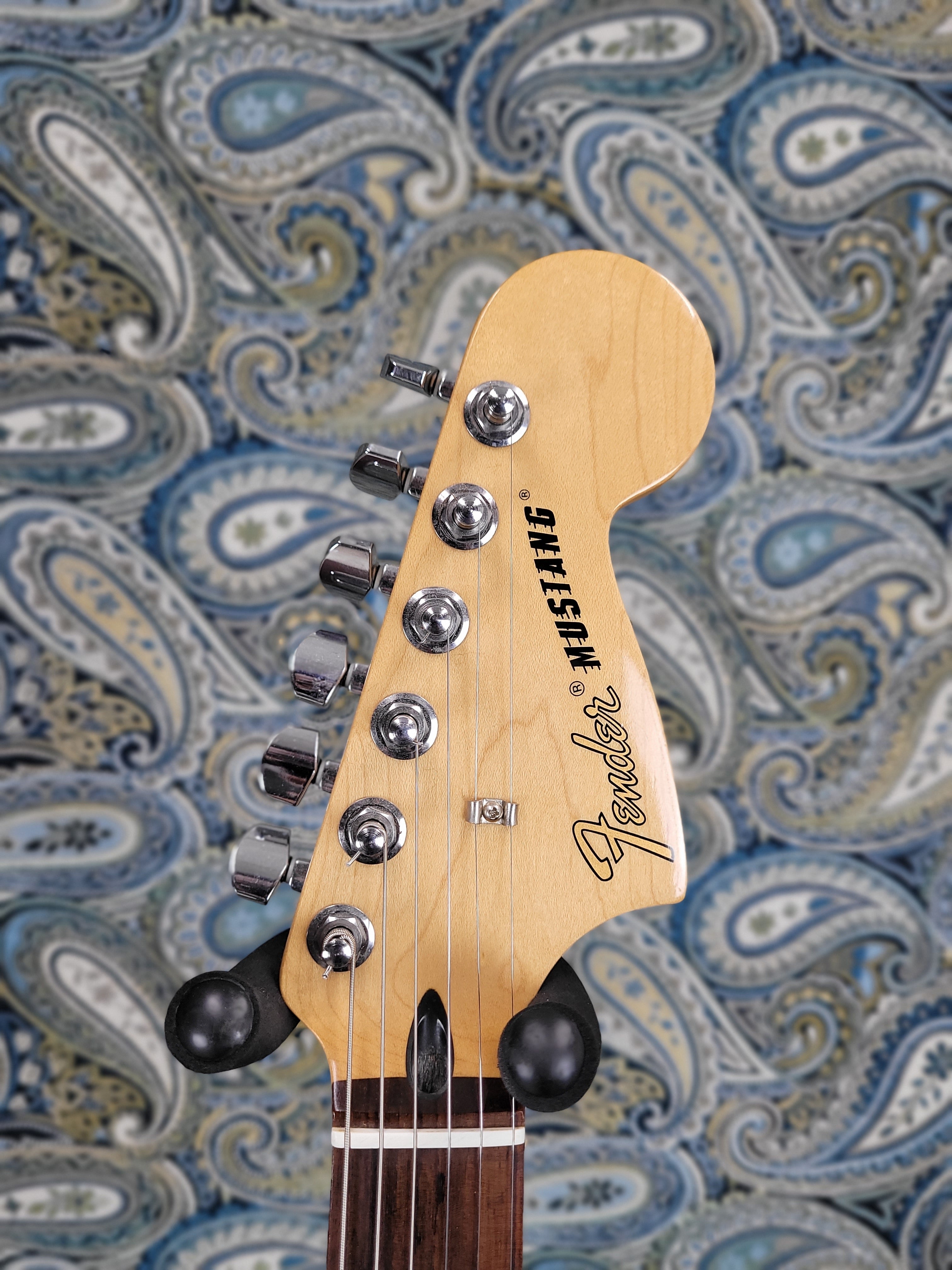 Tonally flexible, the pair of Mustang MP-90 pickups have all the bite and pristine cleans you’ve come to expect from Fender pickups, with a snarly midrange and punchy low end that breathes new life into the traditional Mustang sound. Master volume and tone controls, along with a conventional three-way pickup switch, shape the pickups’ tone to craft your sound. Topped by a 9.5 in.-radius rosewood fingerboard with 22 medium jumbo frets, the “C”-shaped maple neck is comfortable for all playing styles.