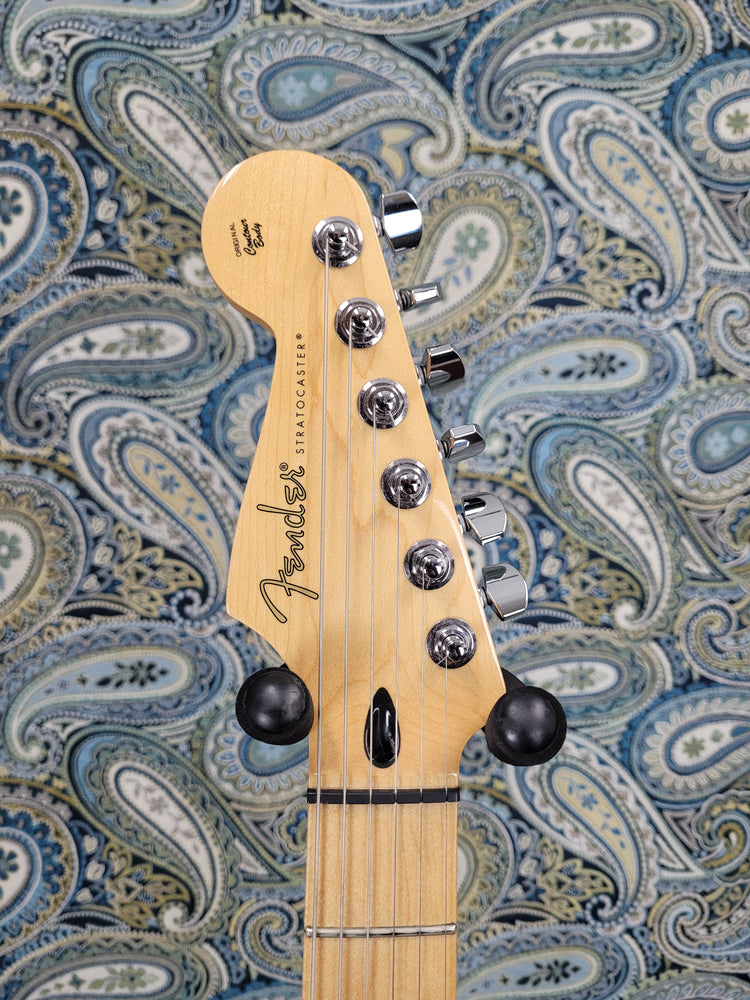 This is a rockin' partscaster built with quality Fender components. MIM body, MIM "Fender Player Series Stratocaster Reverse Headstock Neck", Fender Texas Special Pickups, and Fender Locking Tuners. This bad boy plays like a dream and offers a unique look that isn't available in the standard Fender catalogue. Also, CTS pots! A well made partscaster, this is.