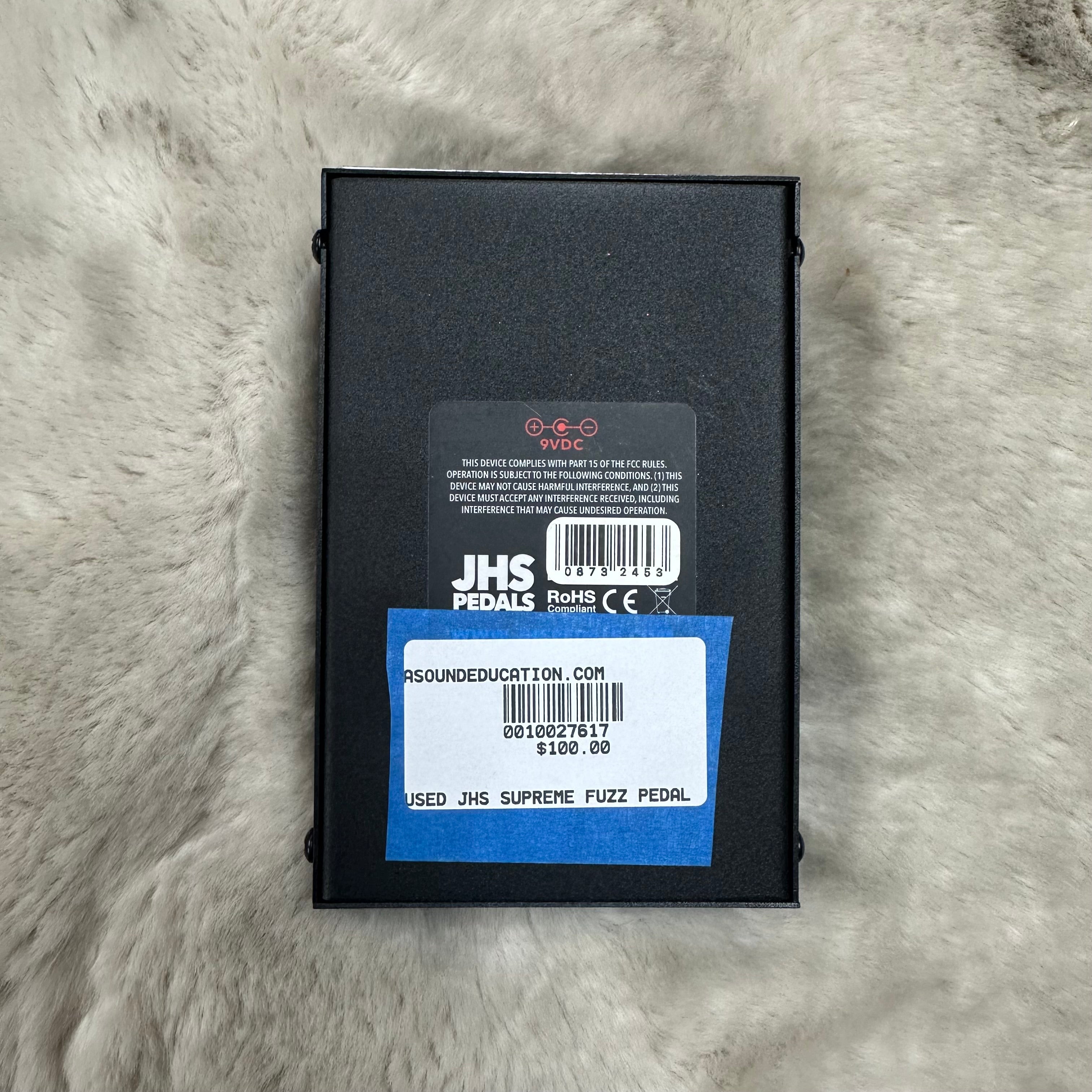 The controls are Volume and Expand. Volume makes the effect louder as you turn it and Expand increases the amount of fuzz. On the side you will see two buttons. The “Tone” button engages a mid cut that flattens out the Supreme’s attack and makes it more submissive. Think of this as a preset scooped mid EQ control. The “Mode” button activates our very own “JHS Mode” setting. You will hear a much more pronounced octave up effect, thicker mid-range, and more available volume/boost." -JHS