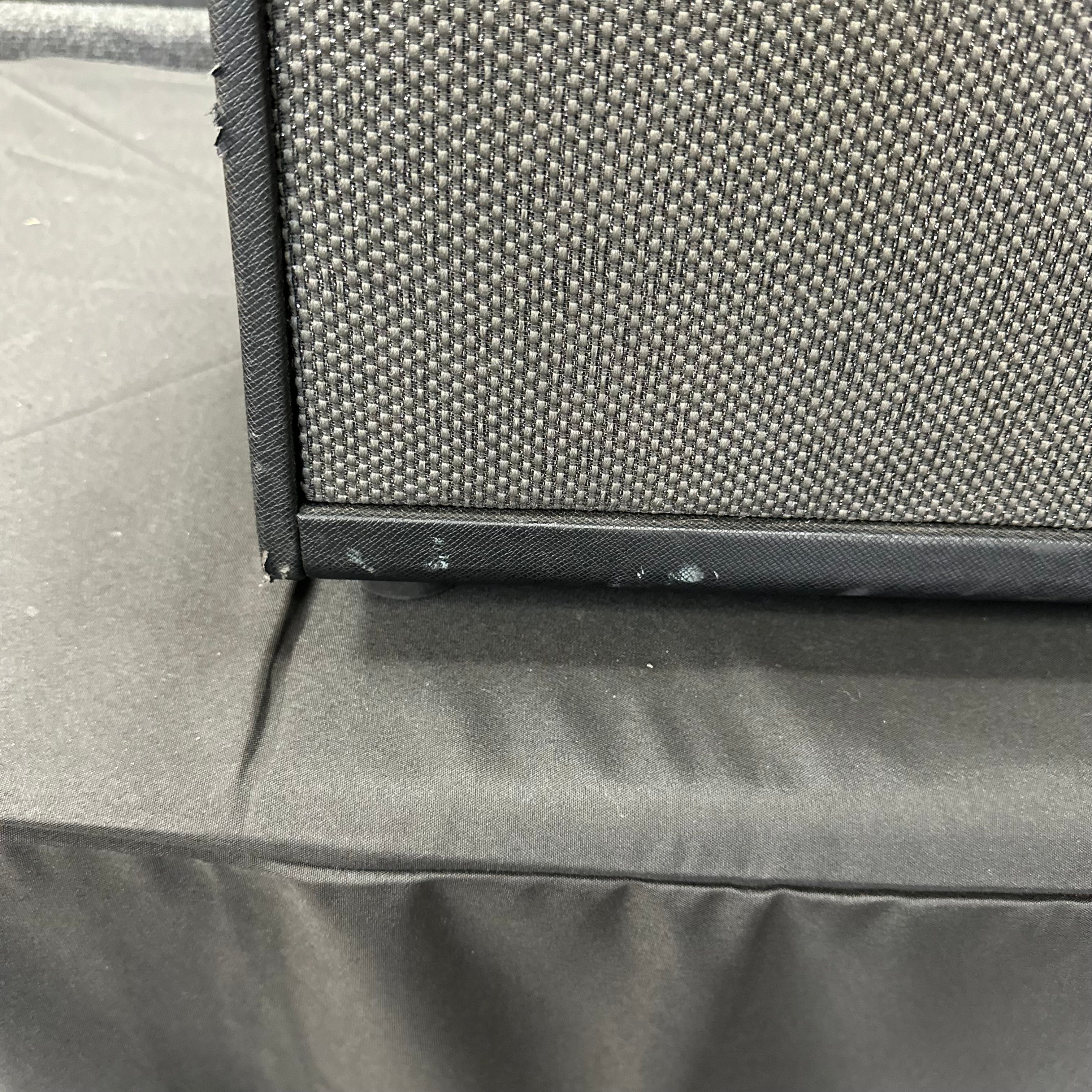 This cabinet is in solid shape, but definetly has been used/gigged a bit. Some scratches, nicks, one corner has a bit of fraying of the tolex, etc. All photographed to our best ability. This thing is a modeller's best friend! Keep it simple with the PowerCab Plus. Kickback legs rock, allowing this to serve as an amplifier or a monitor. Comes in at 36LBS. Not too shabby!