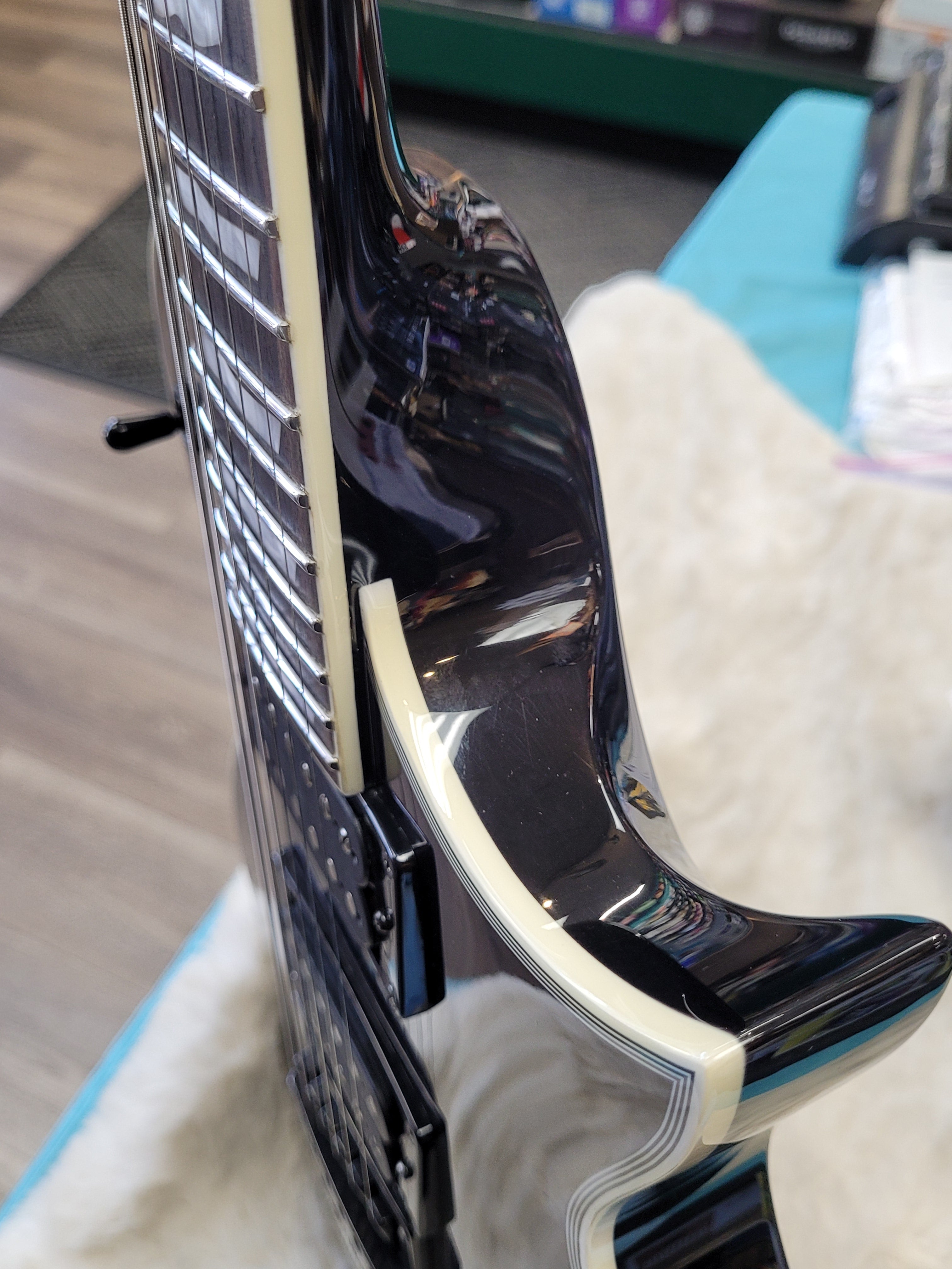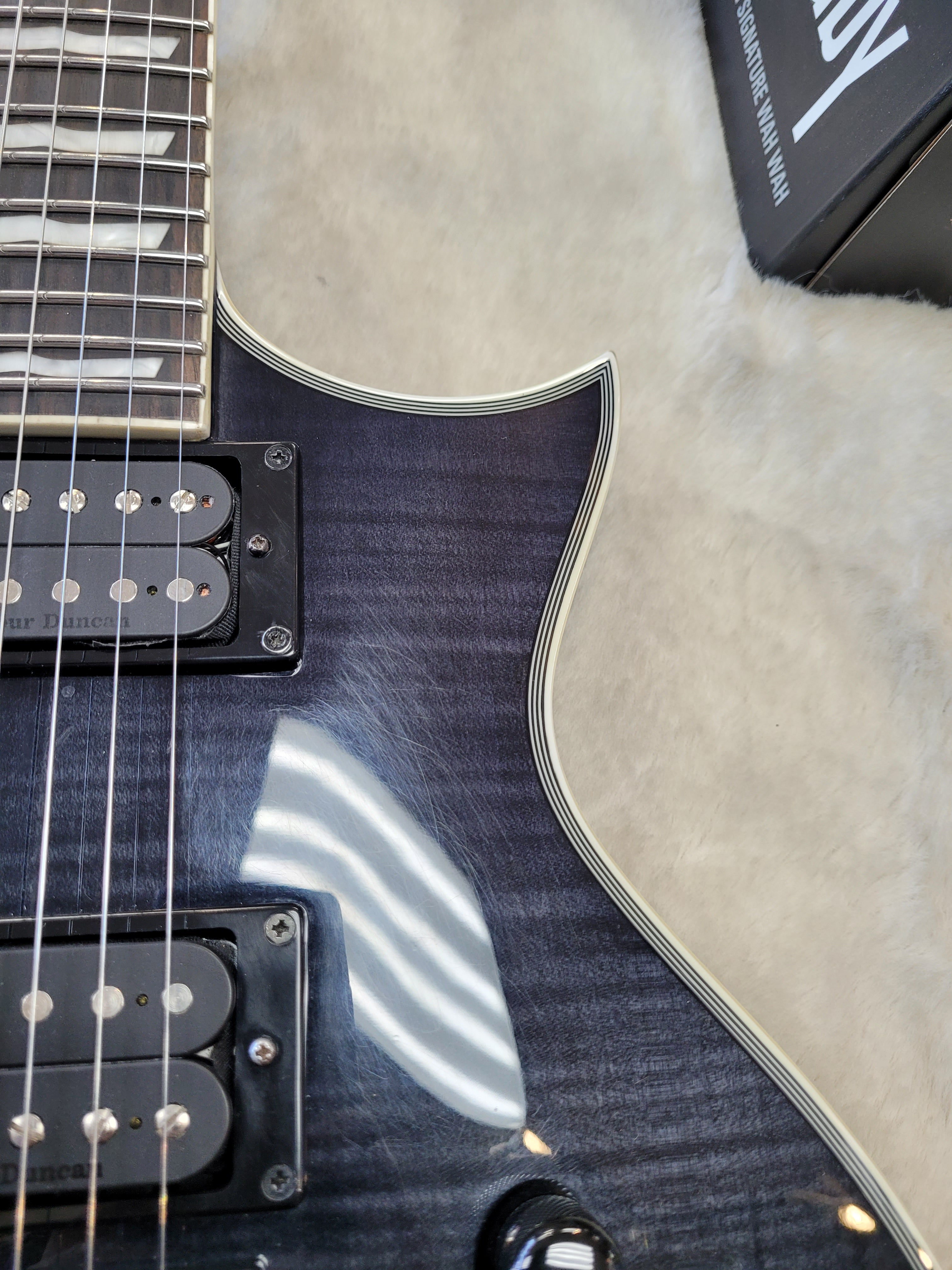 This guitar is in GREAT condition. Minor scuffs here and there from normal play but very well maintained and plays like butter. This is a real winner for hard rockers who like more control over their setups and feel of their guitar!