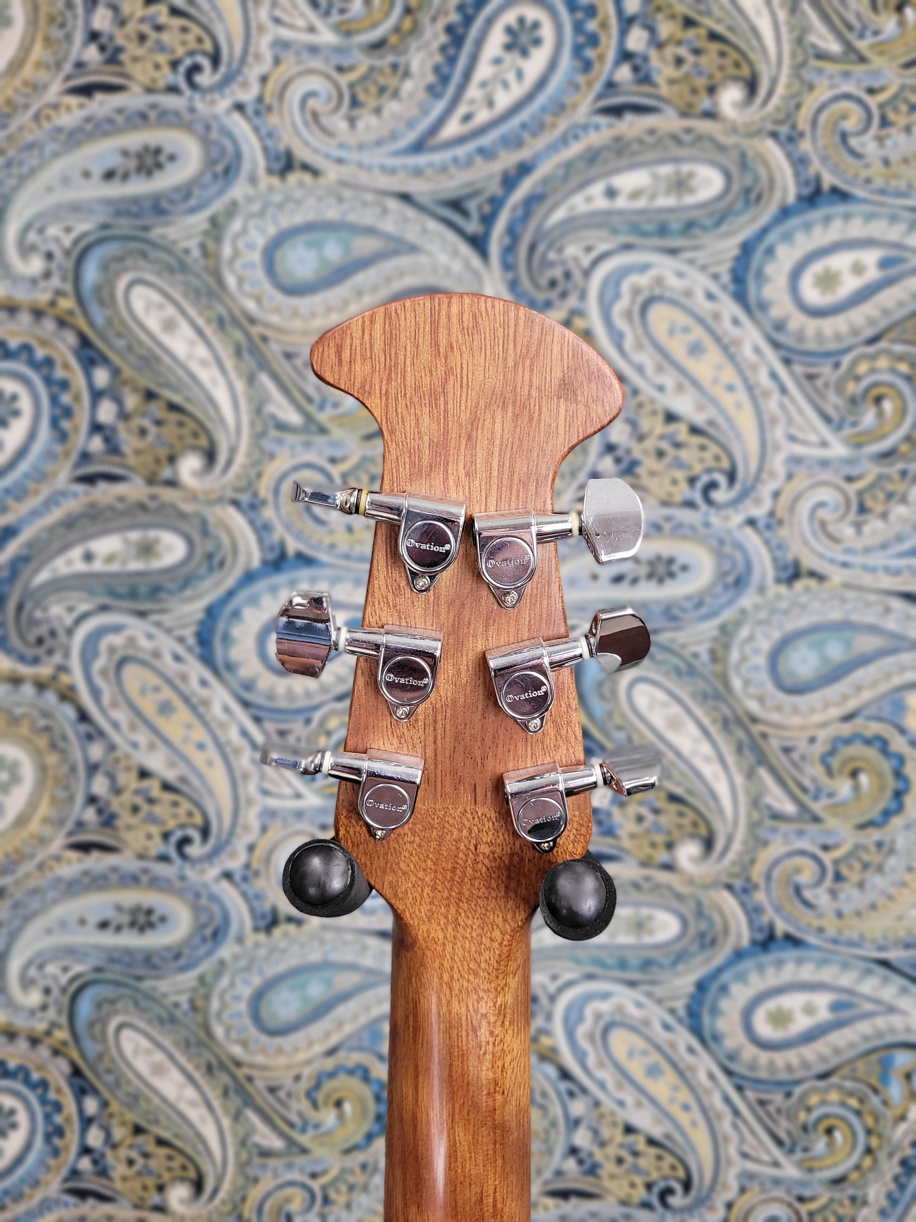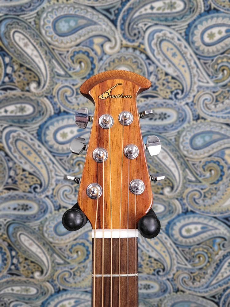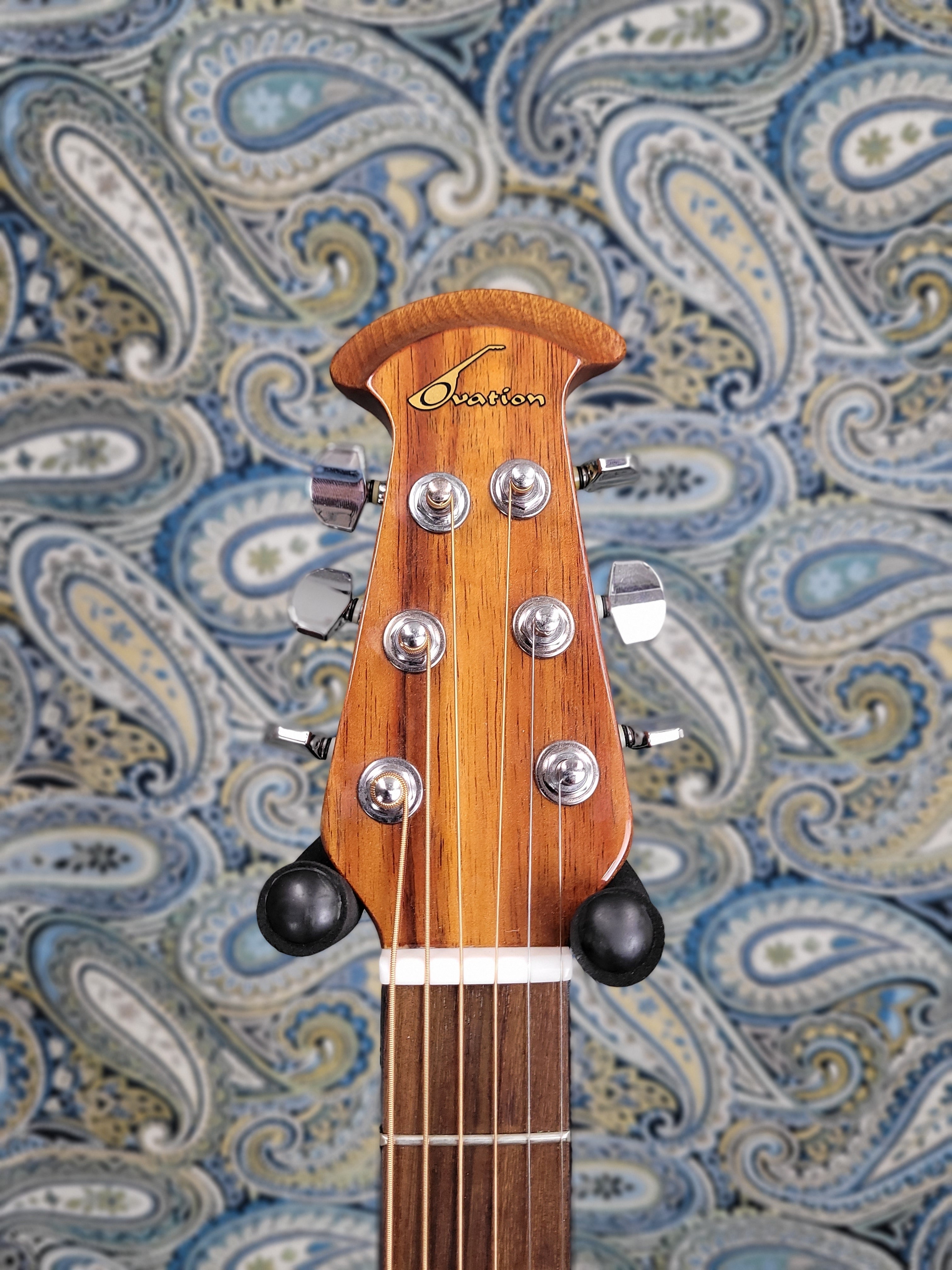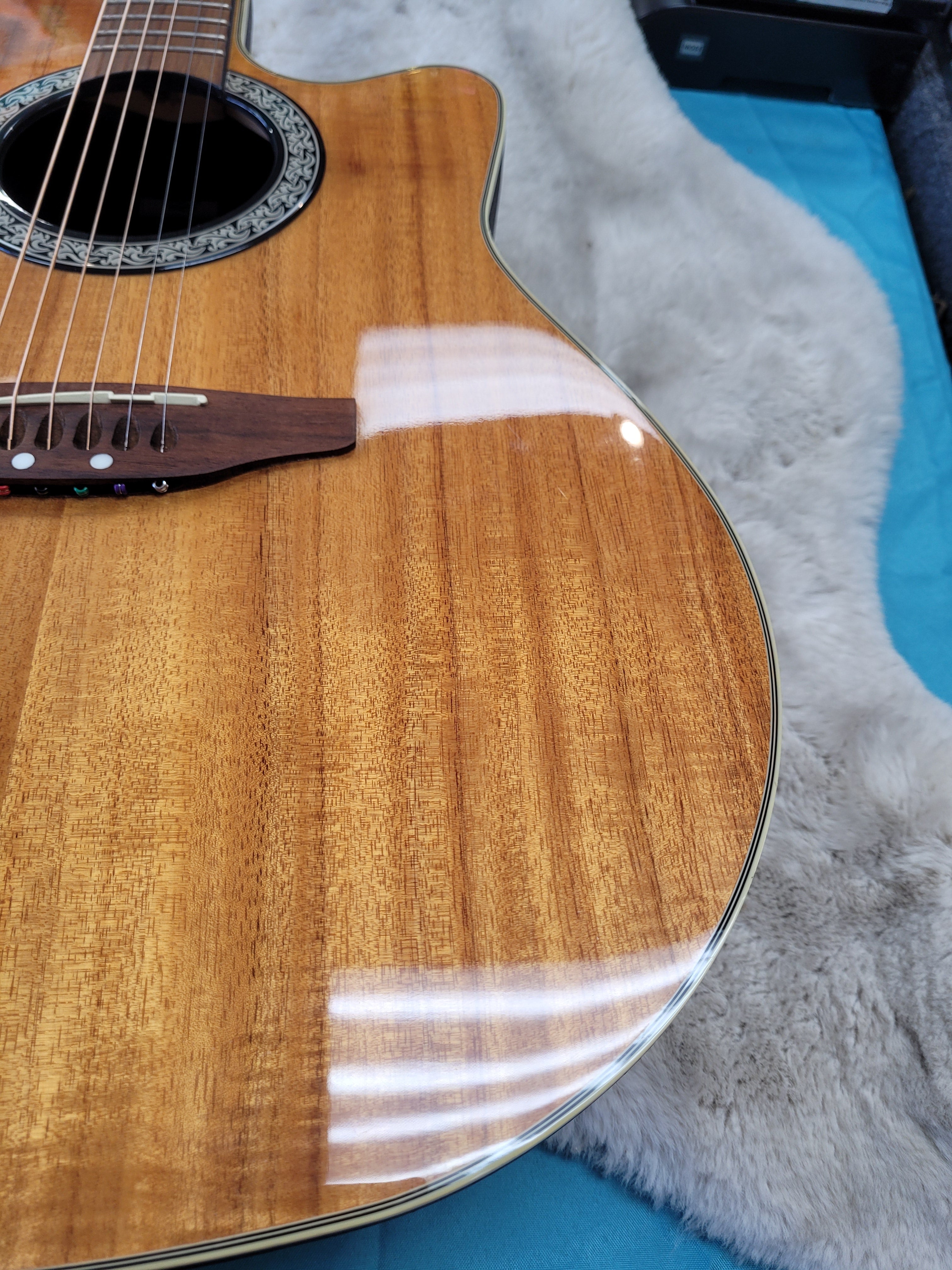 This guitar is in great shape! There are very light signs of wear throughout. The top of the headstock has a some light scuffage as well as on the top of the body from pickin'. The strap posts have been upgraded with strap locks for quick strap removal. This is a real winner from Ovation and it could be yours with a hard case to boot!