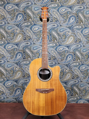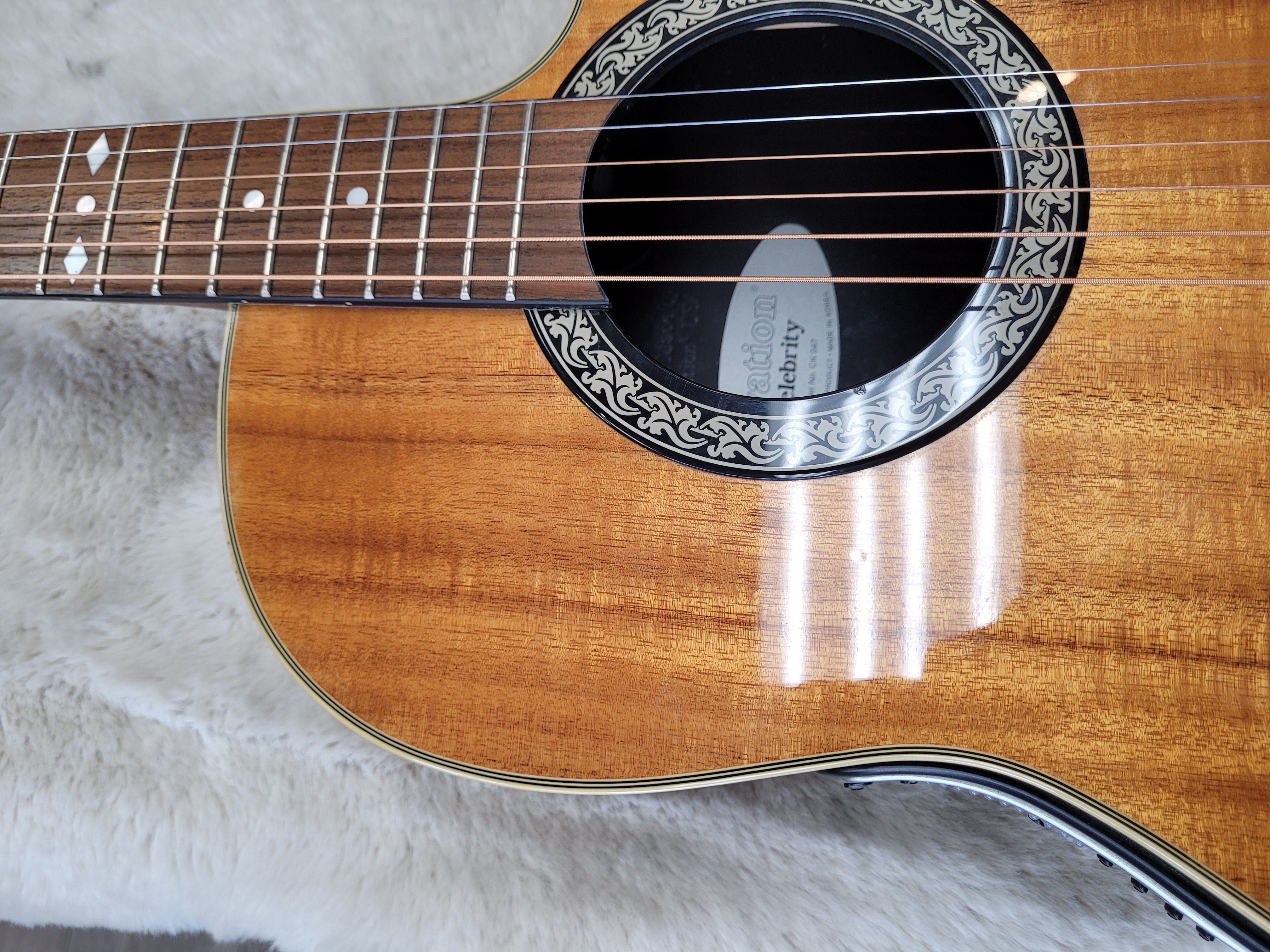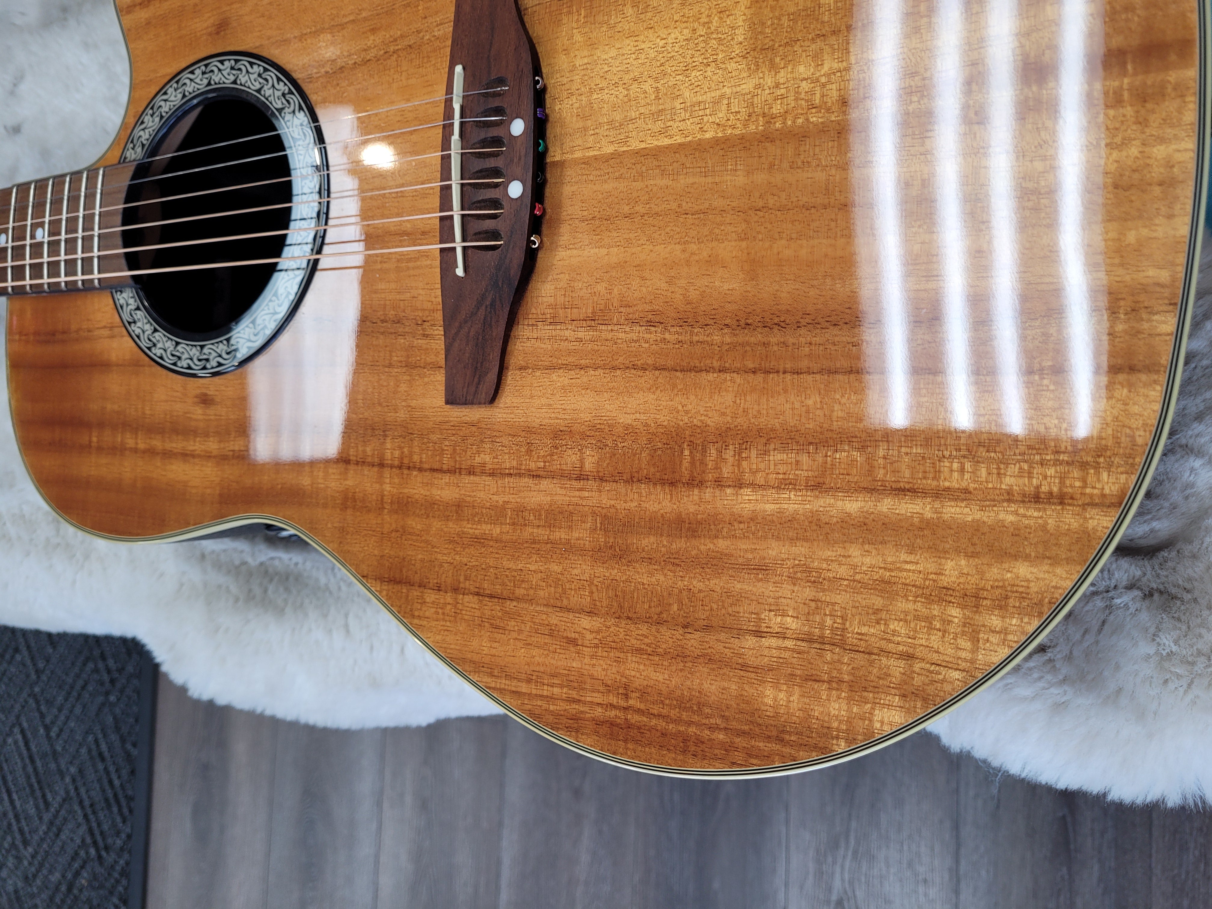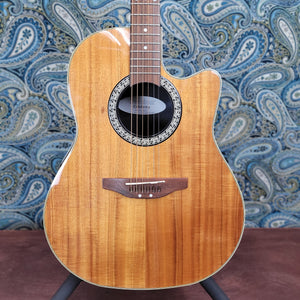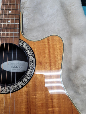This pre-loved Ovation CK047-Fkoa Celebrity Natural Acoustic Electric Guitar is ready to rock with its gorgeous figured koa top and comfy mahogany neck paired with a smooth rosewood fingerboard.