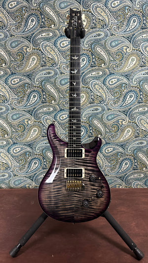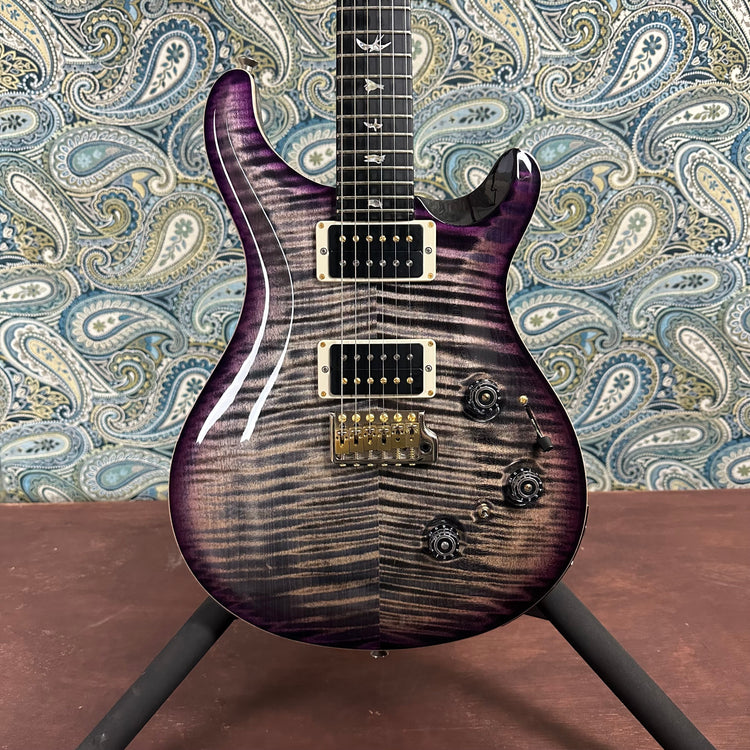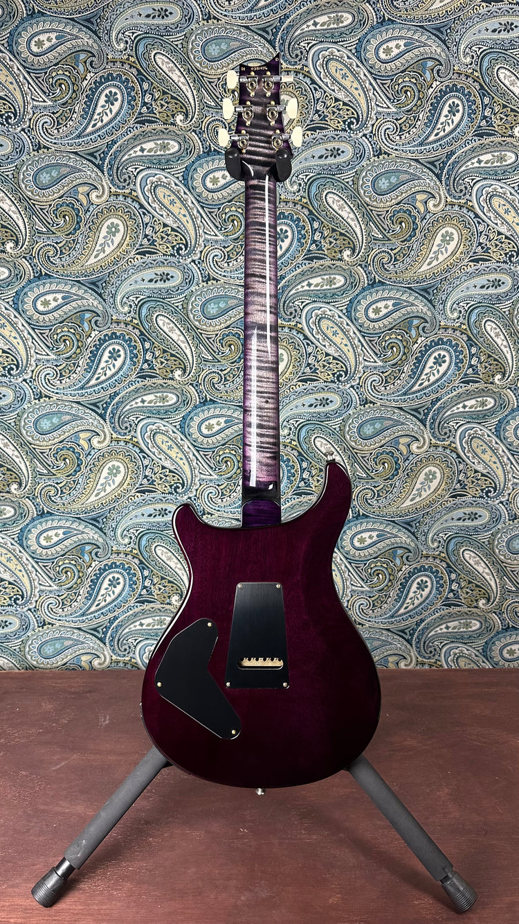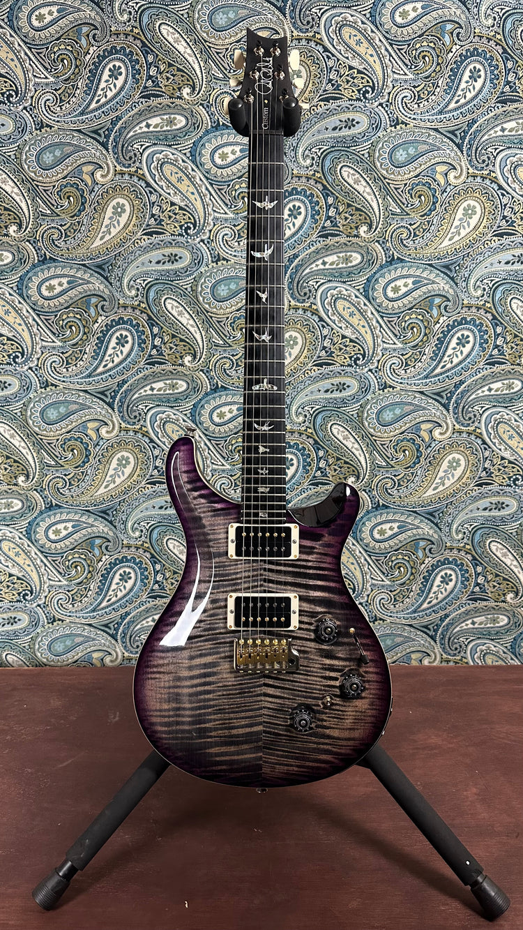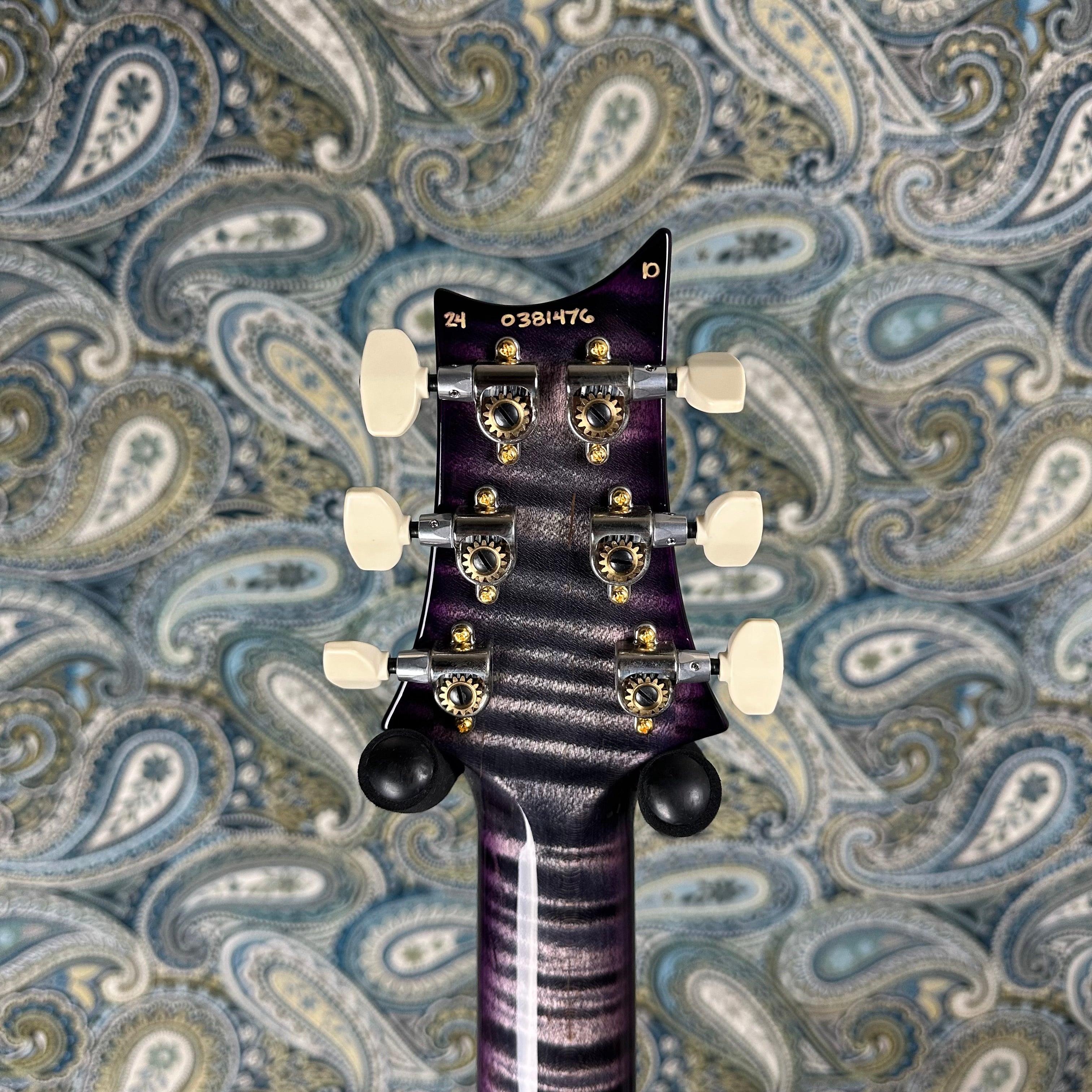 PRS Wood Library Custom 24 Piezo 10-Top Flame Charcoal Purple Burst w/ Figured Stained Neck