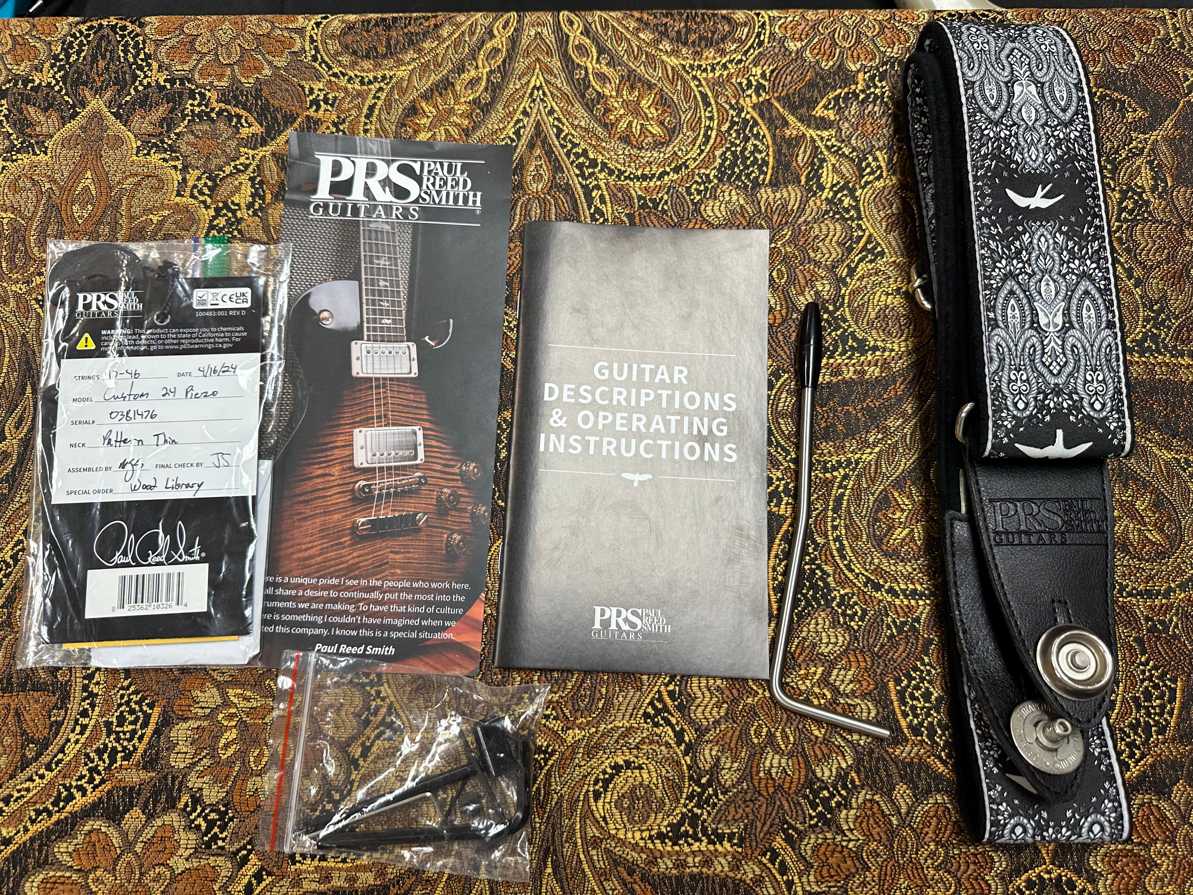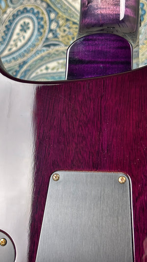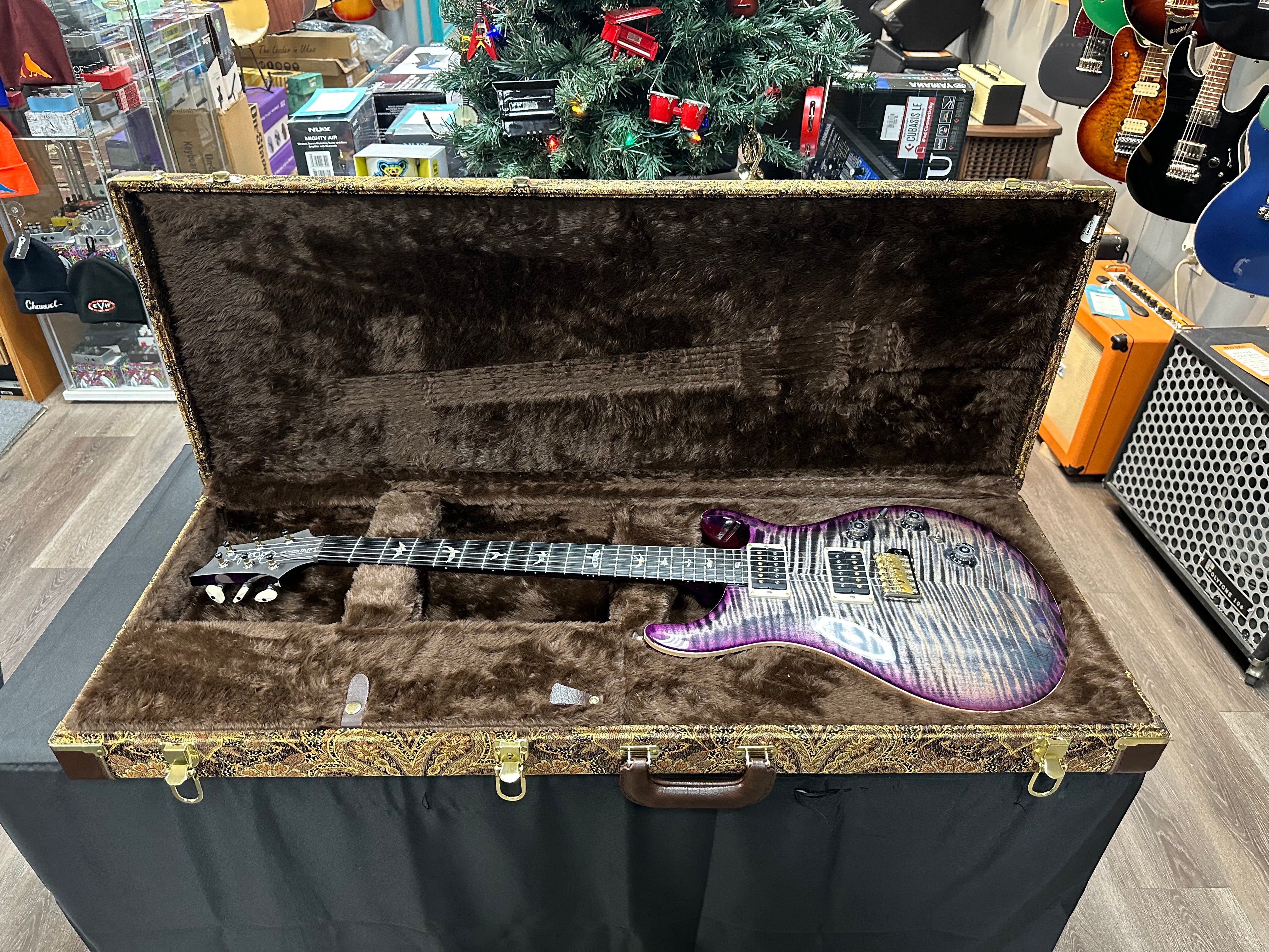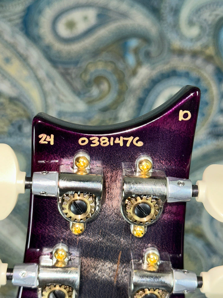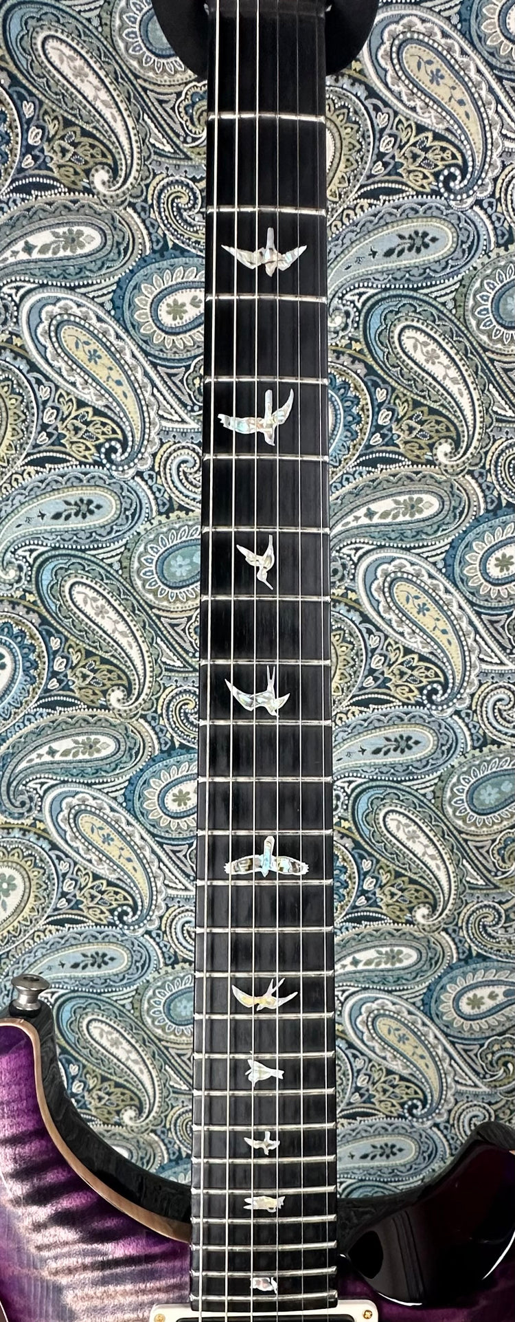 PRS Wood Library Custom 24 Piezo 10-Top Flame Charcoal Purple Burst w/ Figured Stained Neck