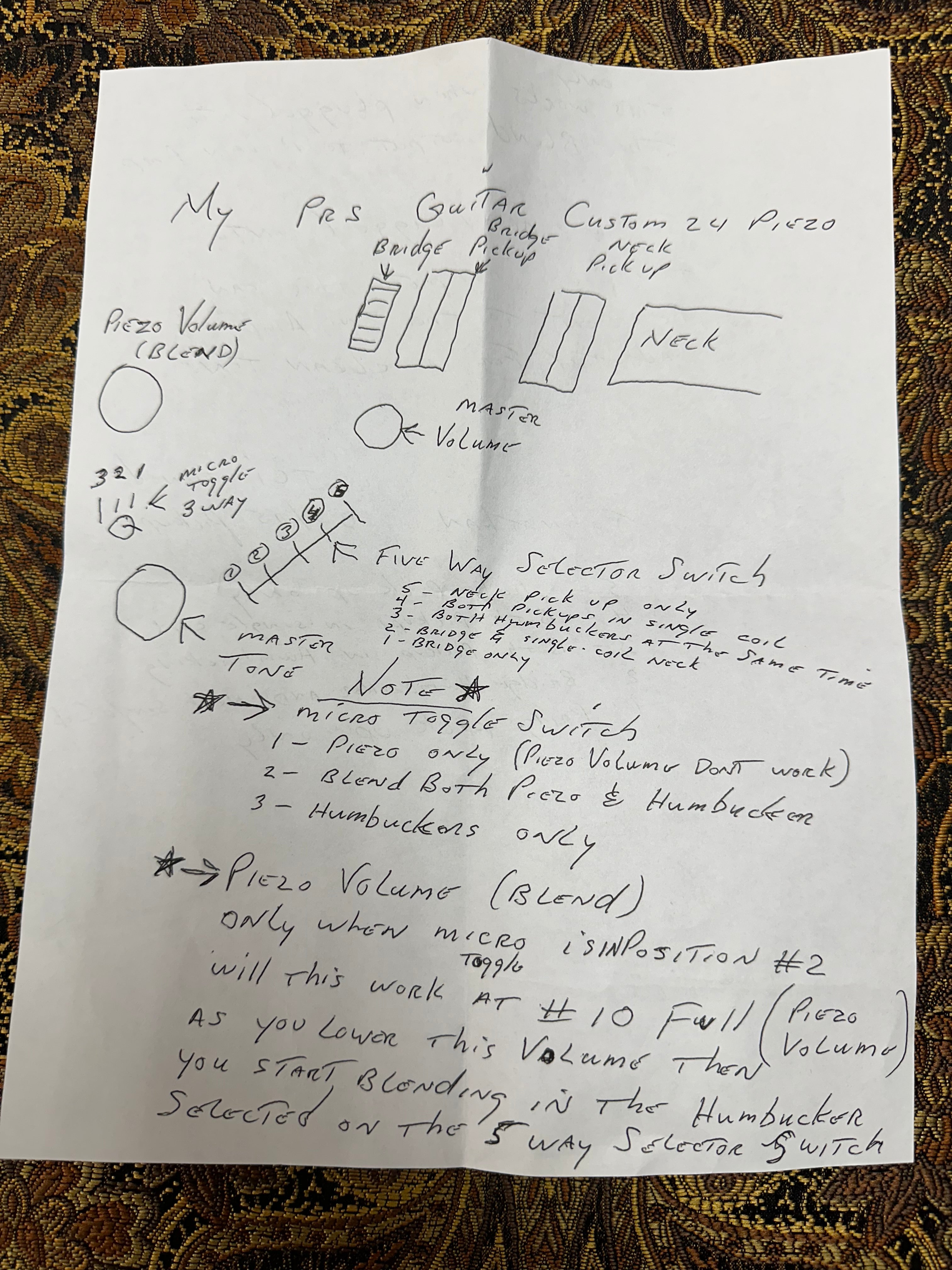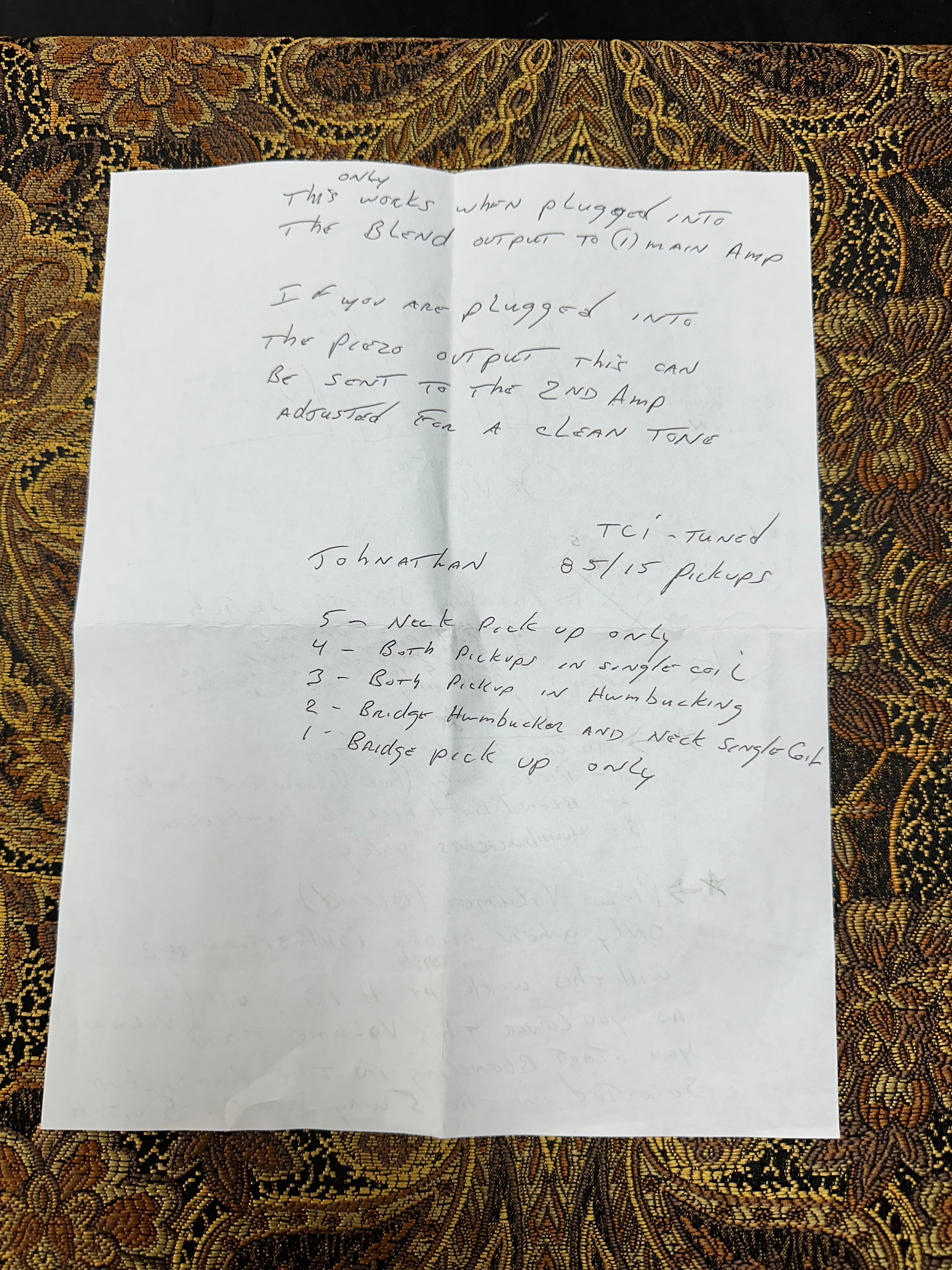 | Controls and Switching: | Volume, Tone, 5-Way Blade, Piezo Controls |