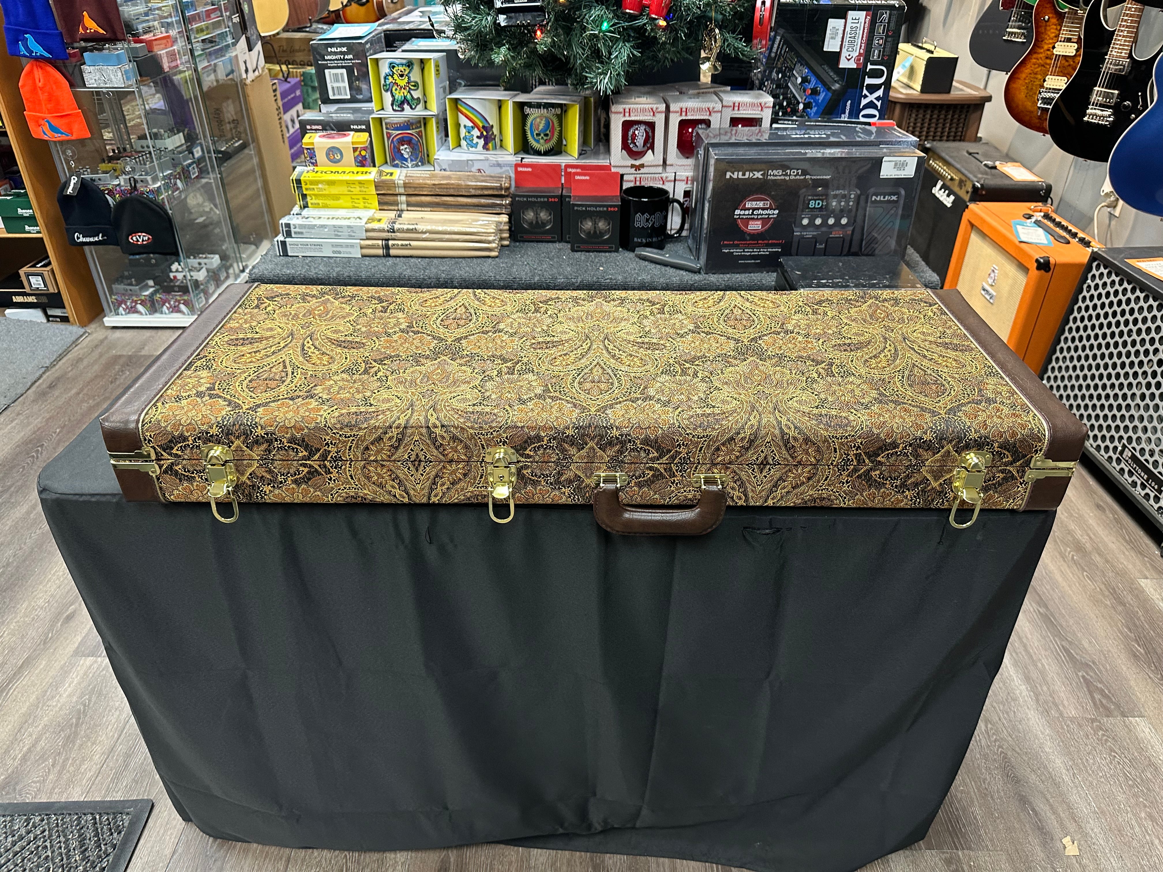 This guitar was purchased new from Chicago Music Exchange, and the original reciept is included. It comes with the original (gorgeous!) hard case and the tremolo bar. The 9v battery has just been replaced and the guitar has been freshly setup with D'Adarrio 9's.