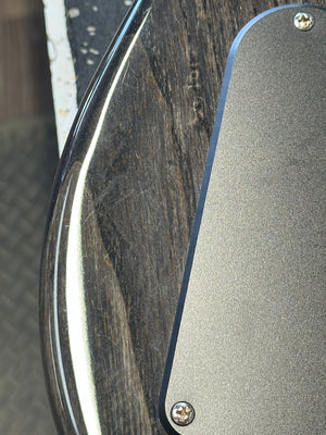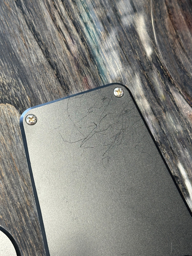 This is a used guitar, so there are some light scratches throughout. We did our best to document these in detail (using a harsh light), and these are nowhere near as prevalent in person. The majority of these scratches are located in the picking area (by the pickups) and in the "buckle rash" area on the back. There's also a small ding on the side near where a player's elbow would go. More peculiarly, there are two pen (?) marks on the back of the neck. These blemishes are likely from the factory as the marks appear to be under the finish. They don't change the feel of the neck at all. Comes with the factory PRS gig bag.