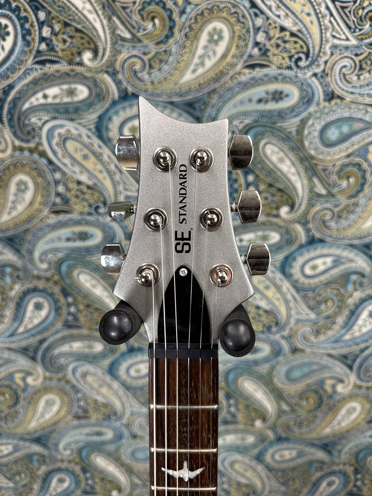 "The SE Standard 24 is a fresh take on PRS's hallmark model: the Custom 24. Updated here with an all-mahogany body, the SE Standard 24 is a modern instrument with a powerful voice. This guitar features classic PRS appointments, including a 24-fret mahogany neck (set neck construction), rosewood fretboard with bird inlays, and a PRS-Designed tremolo. The SE Standard 24 pairs the warm, round tone of an all-mahogany guitar with PRS-Designed HFS and Vintage Bass pickups, resulting in a guitar that handles well and sounds as good plugged straight into an amp as it does run through a pedal board. The SE Standard 24 is the perfect choice players who demand a rock-solid, reliable guitar." -PRS